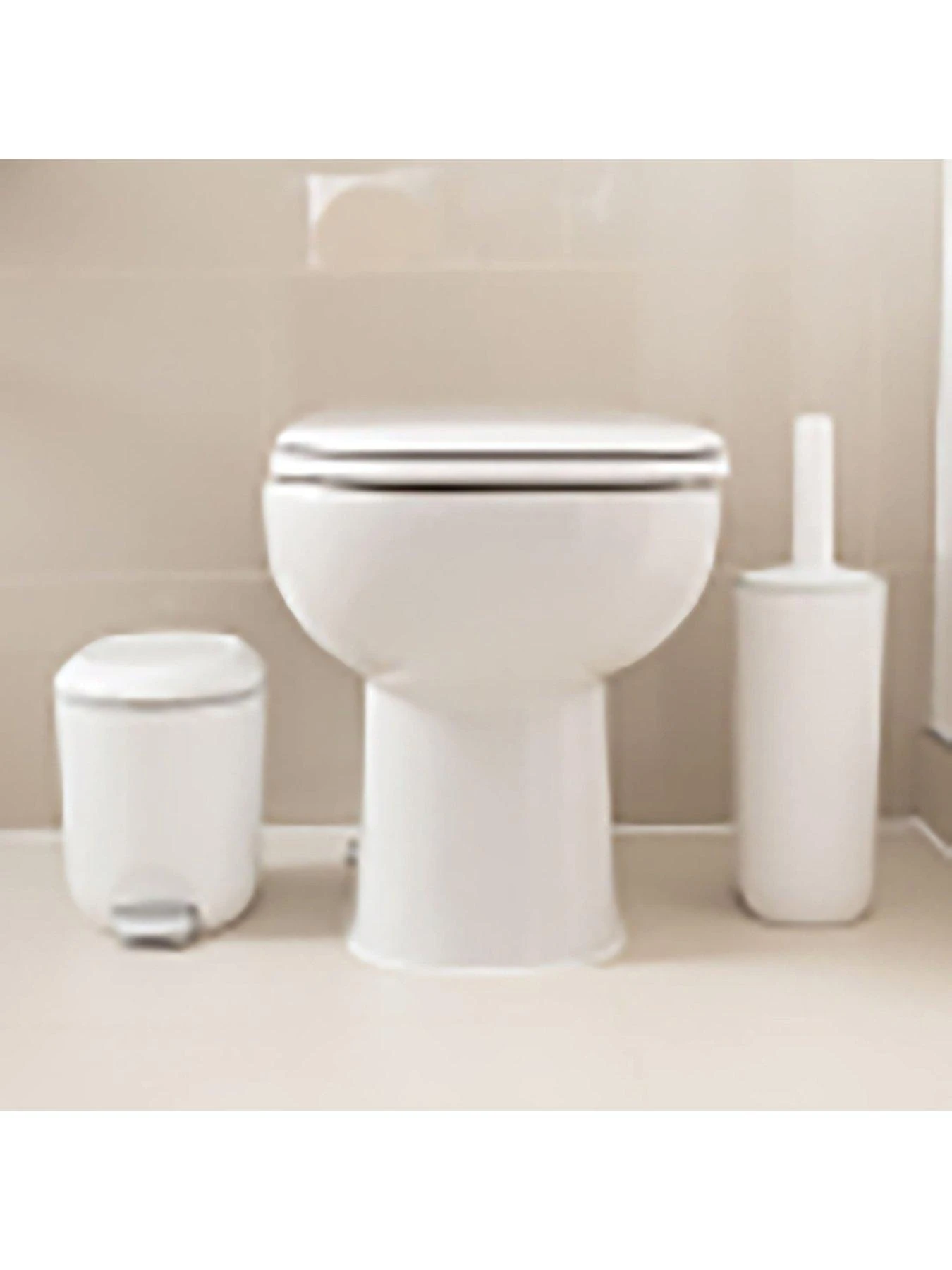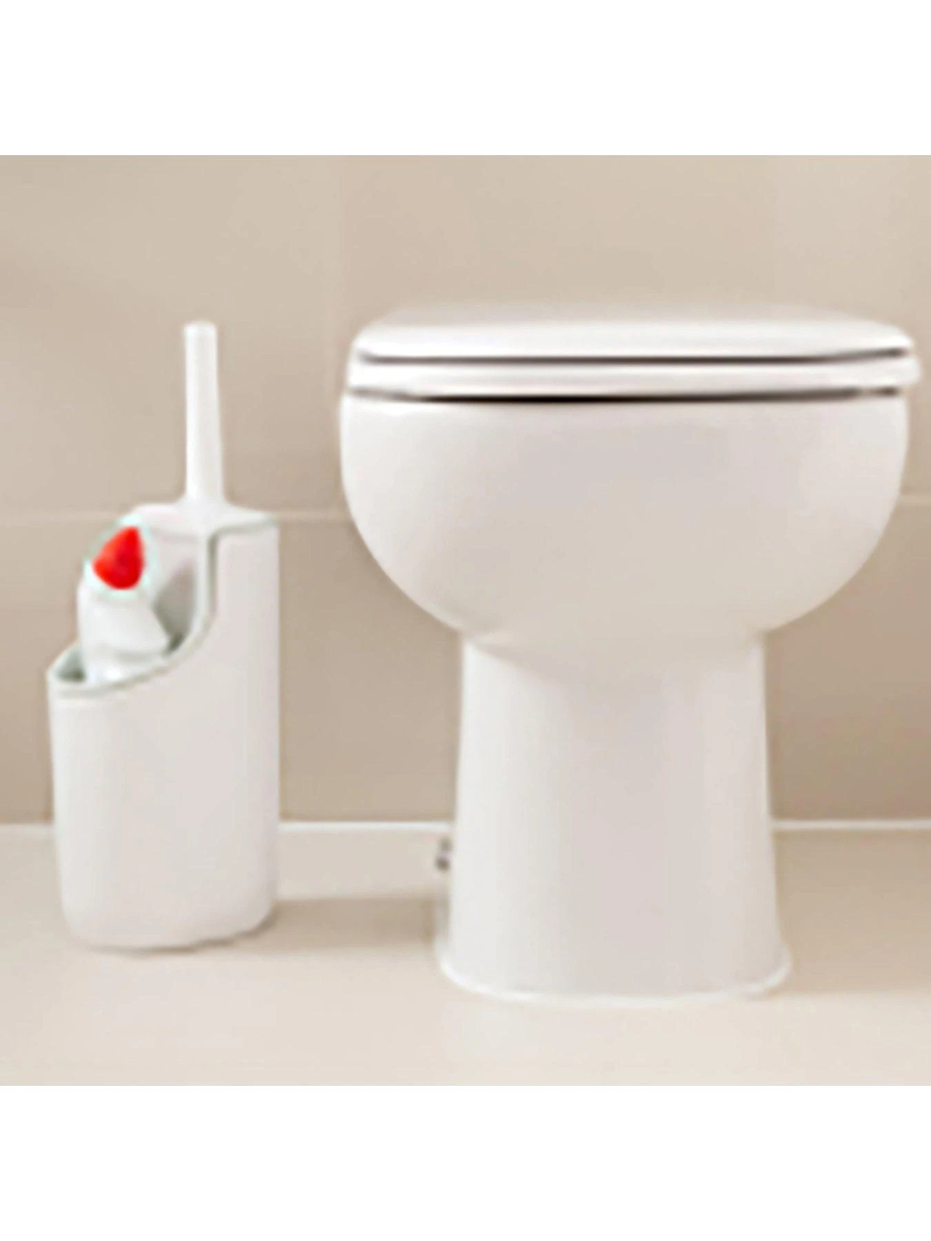 Addis Premium Mode Closed Toilet Brush & Storage Holder Set in White & Grey. With cleaning detergent bottle holder compartment.