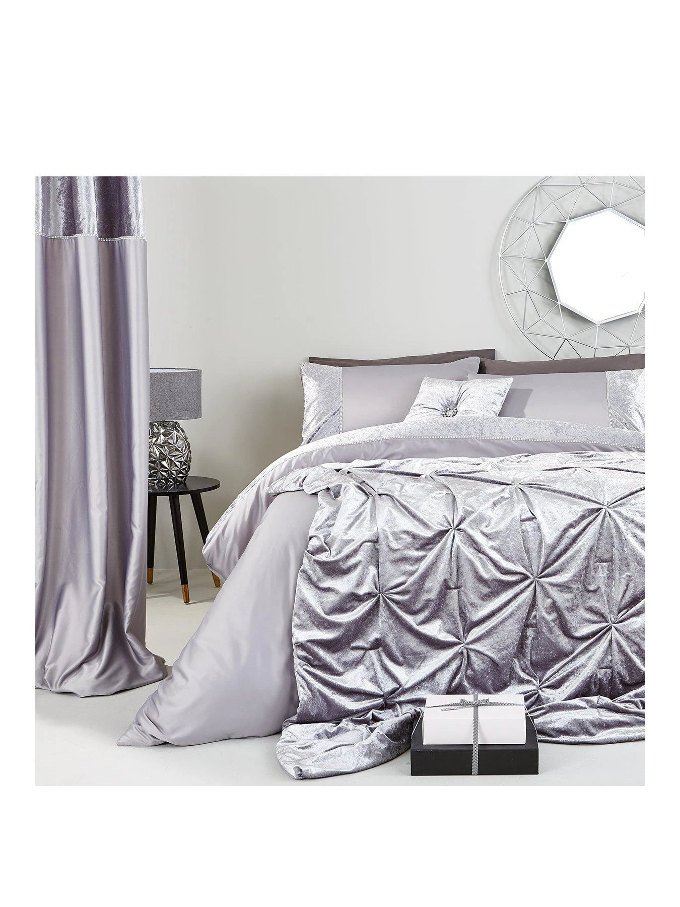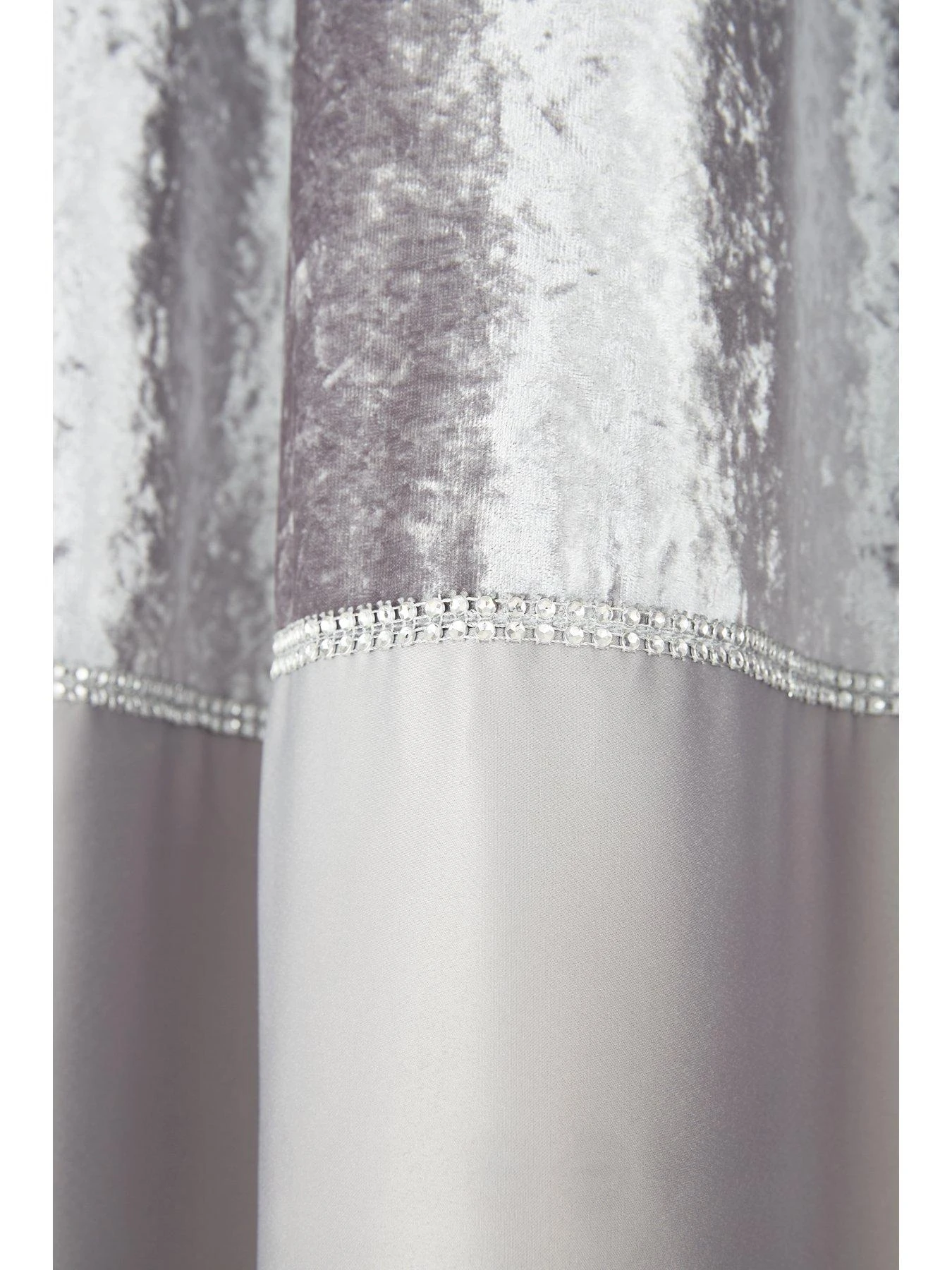 In silver, the matt satin drapes are complemented by a panel of crushed velvet, with a strip of diamantes between the two for an extra hint of sparkle.