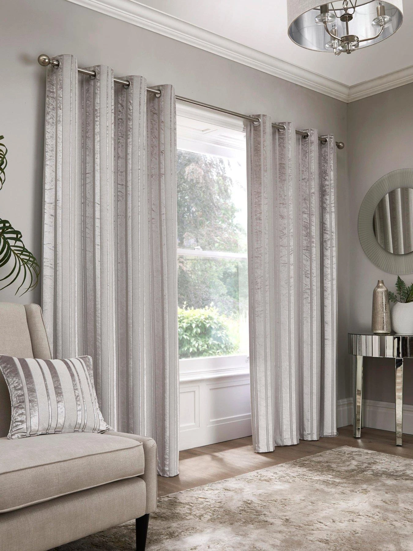 Vertical stripes give the Conrad eyelet curtains from Appletree a stunning appearance that pairs timeless elegance with contemporary charm.