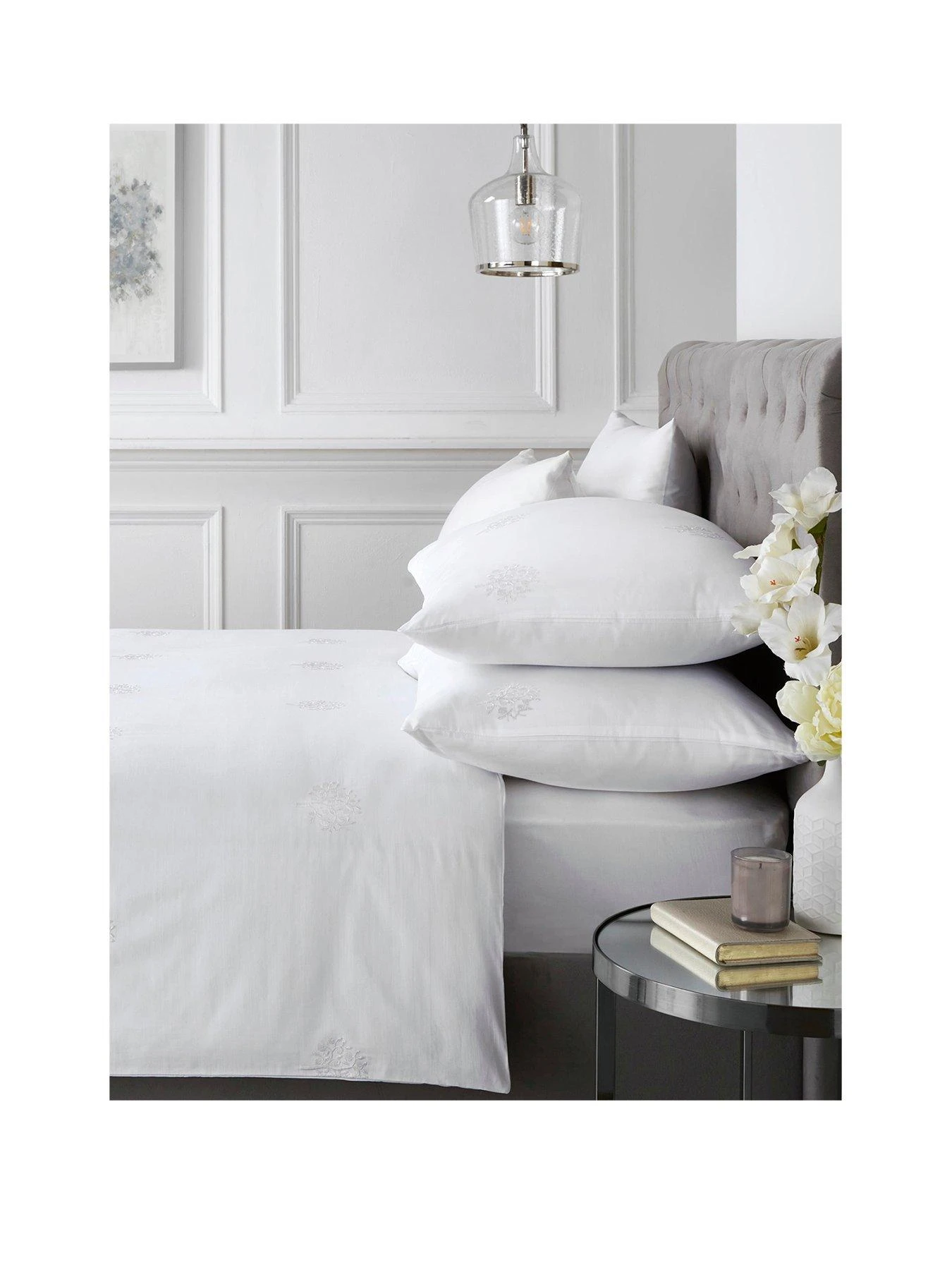 Invite hotel-inspired sophistication into your sleep space with the Embroidered Trees duvet cover and pillowcase set by Appletree.
