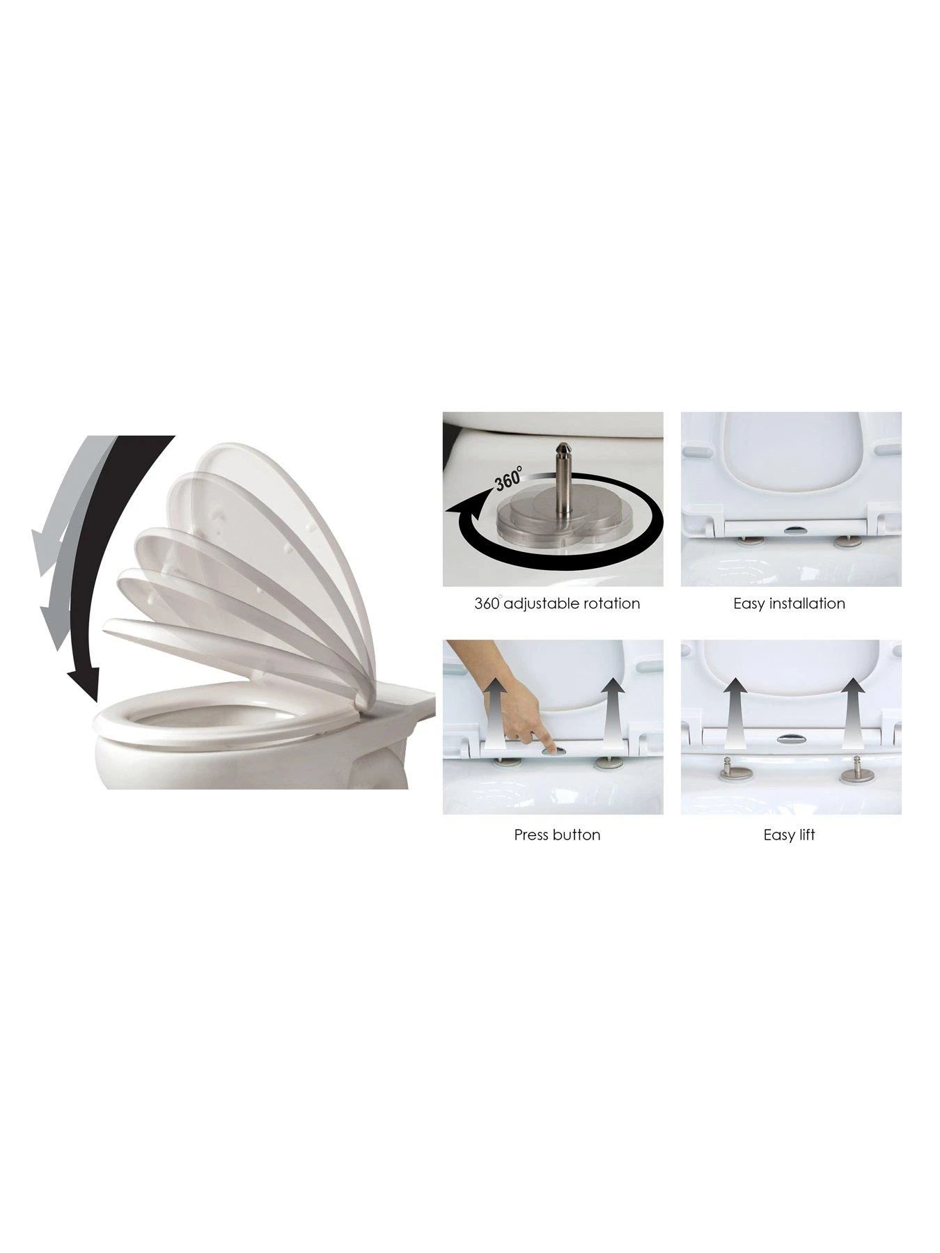 It’s made from Thermoplast – a type of tough, durable plastic – and comes in a classic white colour scheme. A soft close hinge reduces bangs and slams, while the unique fittings allow for easy installation.