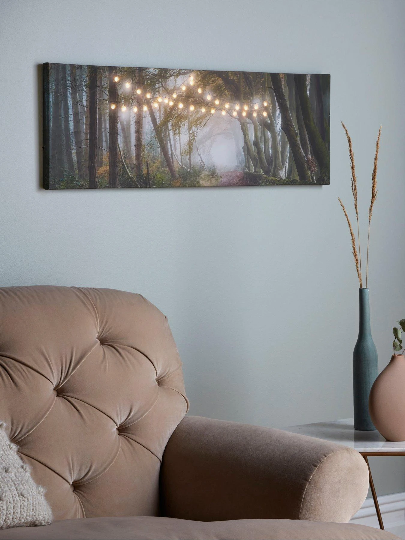 Bring the romantic beauty of a forest walk to your interiors with the Woodland Wander LED canvas from Art for the Home.