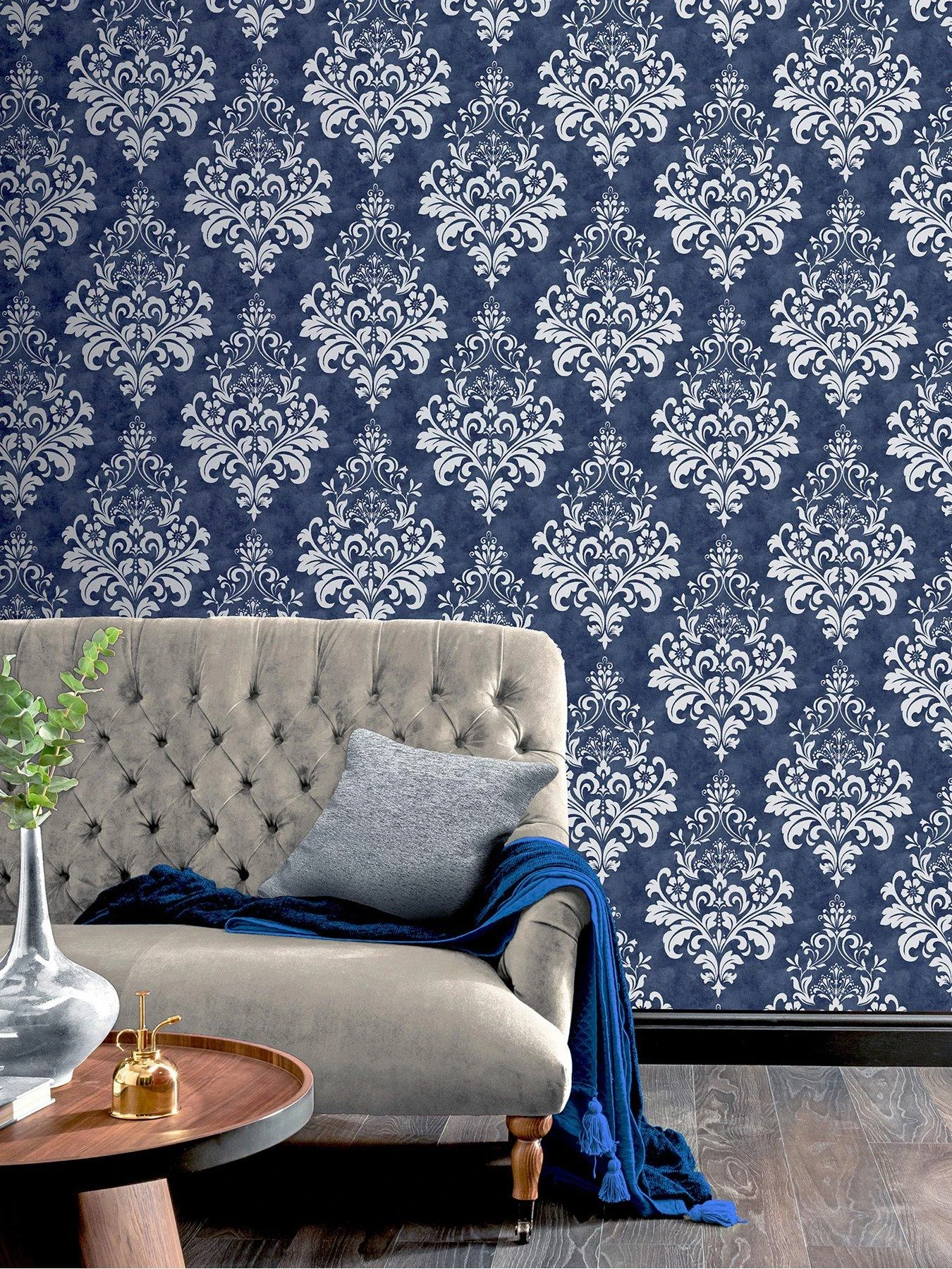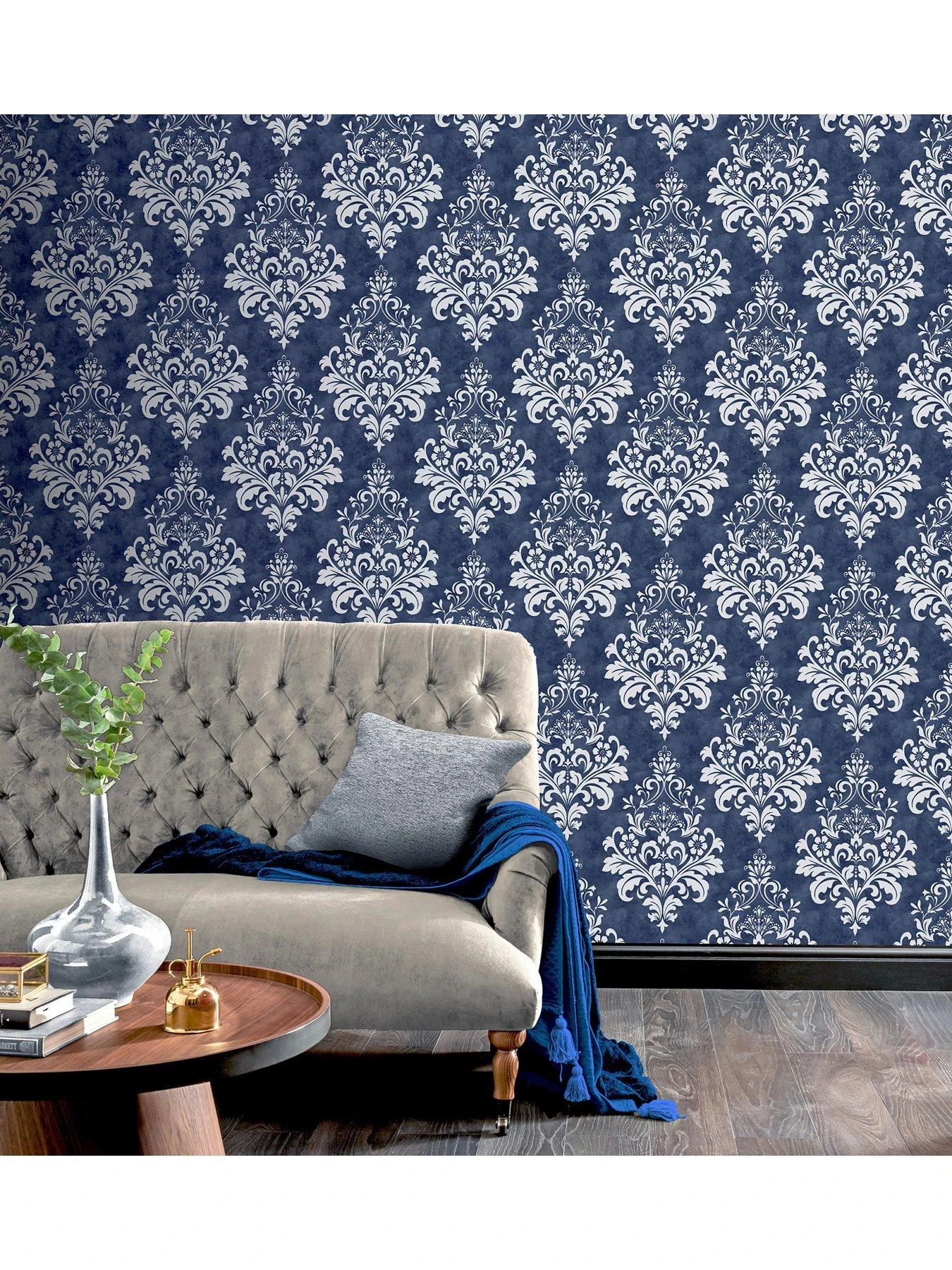ARTHOUSE Baroque Damask Navy & Grey Wallpaper