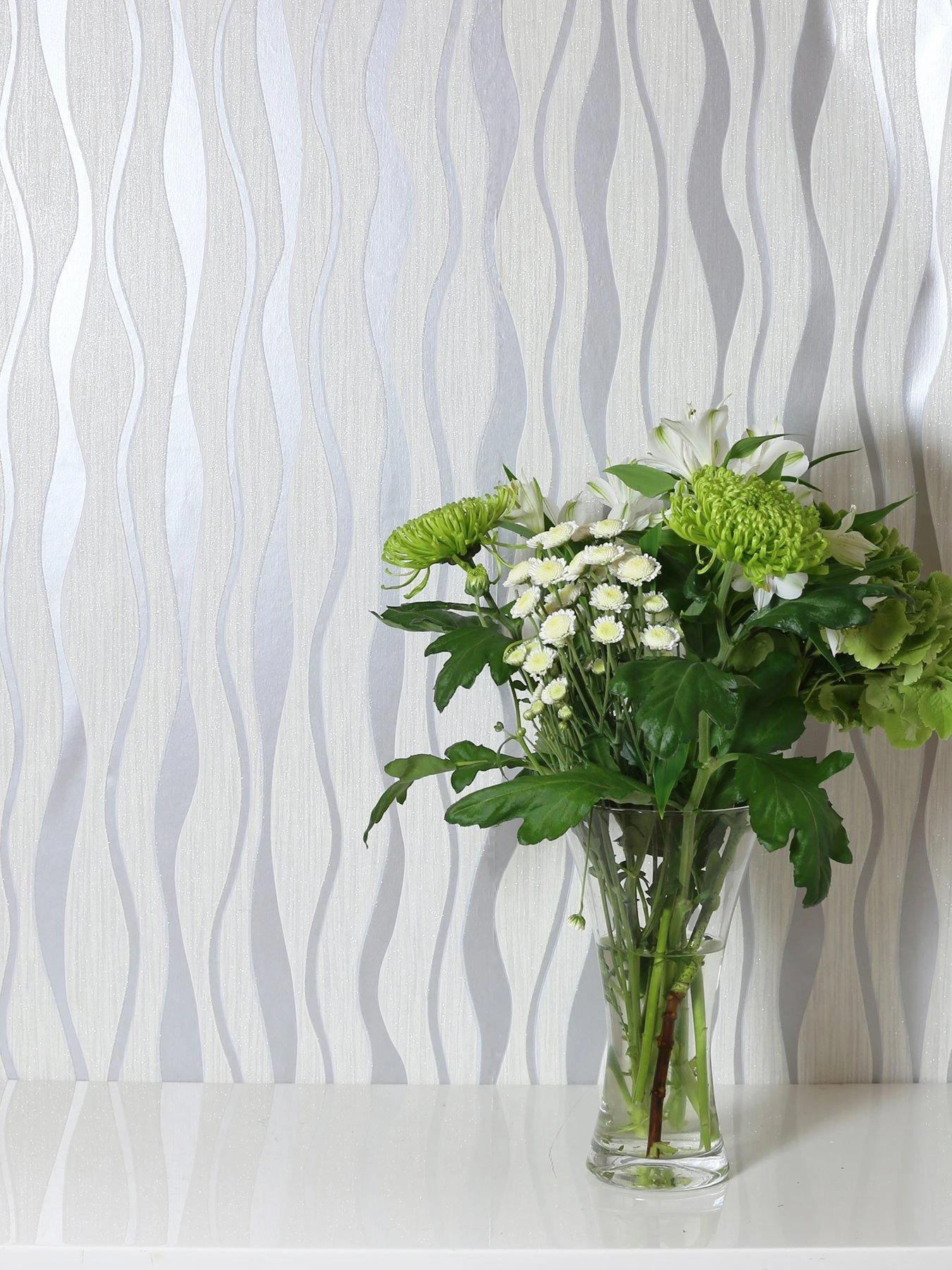 Arthouse White Metallic Wave Wallpaper – 10 metre roll