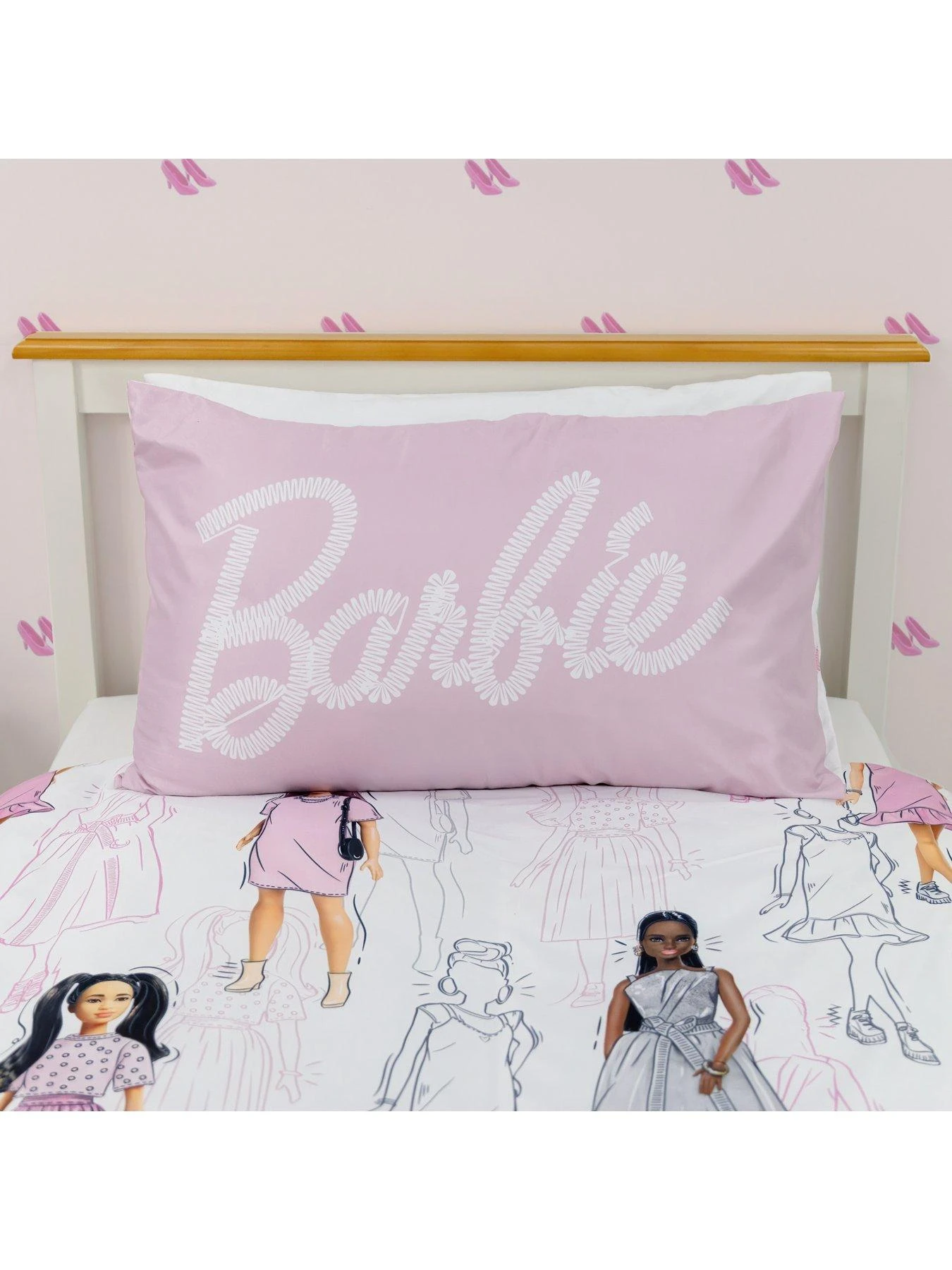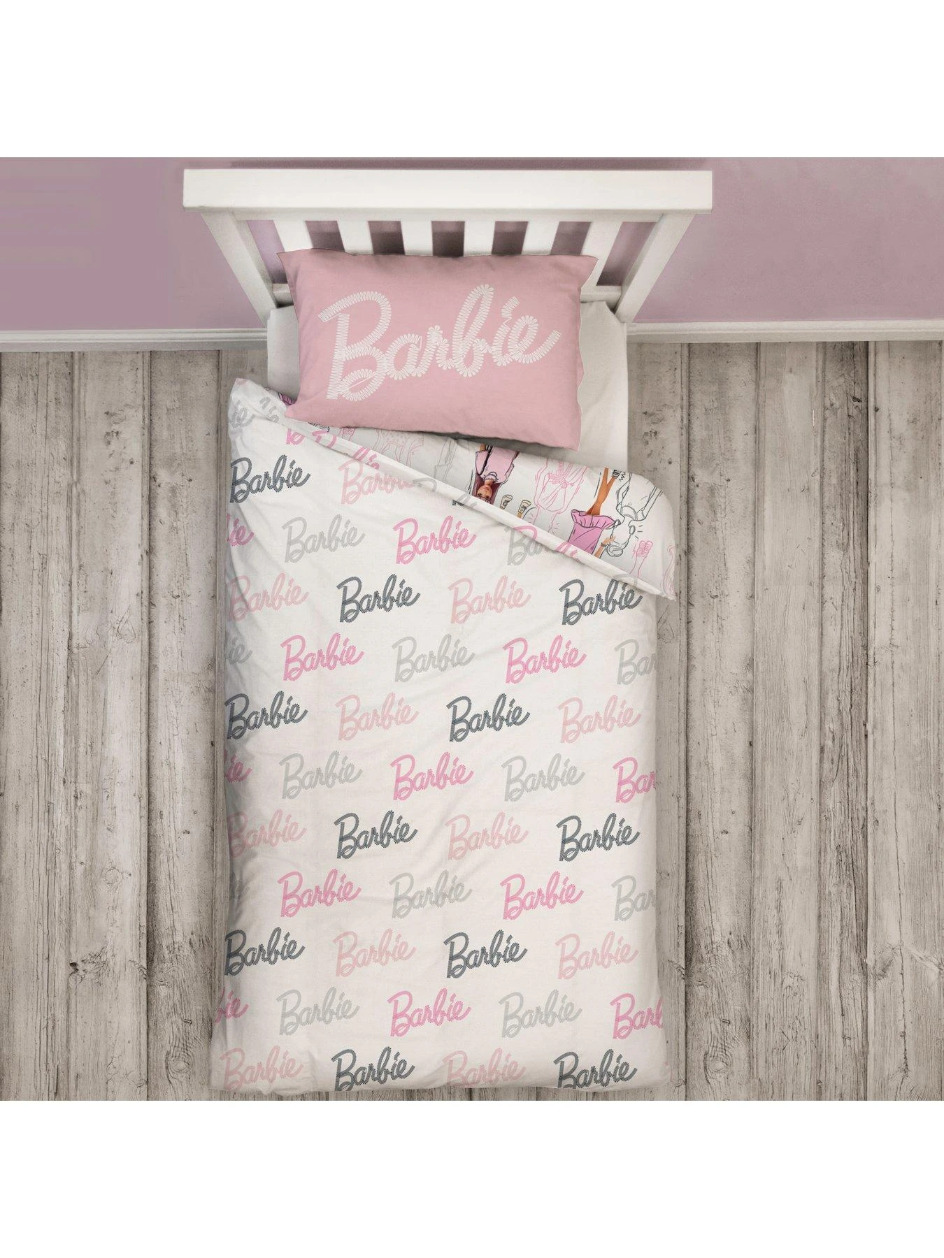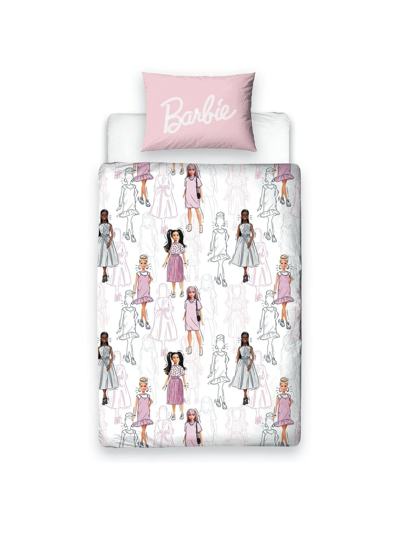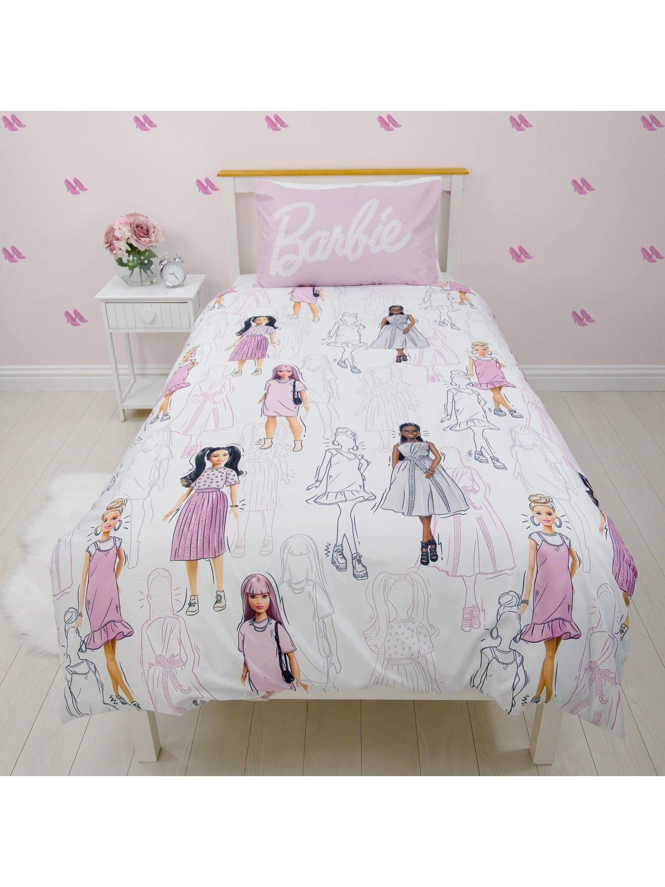 Brighten up their sleep space with the fashion-forward design of the Barbie Figures single duvet cover and pillowcase set.