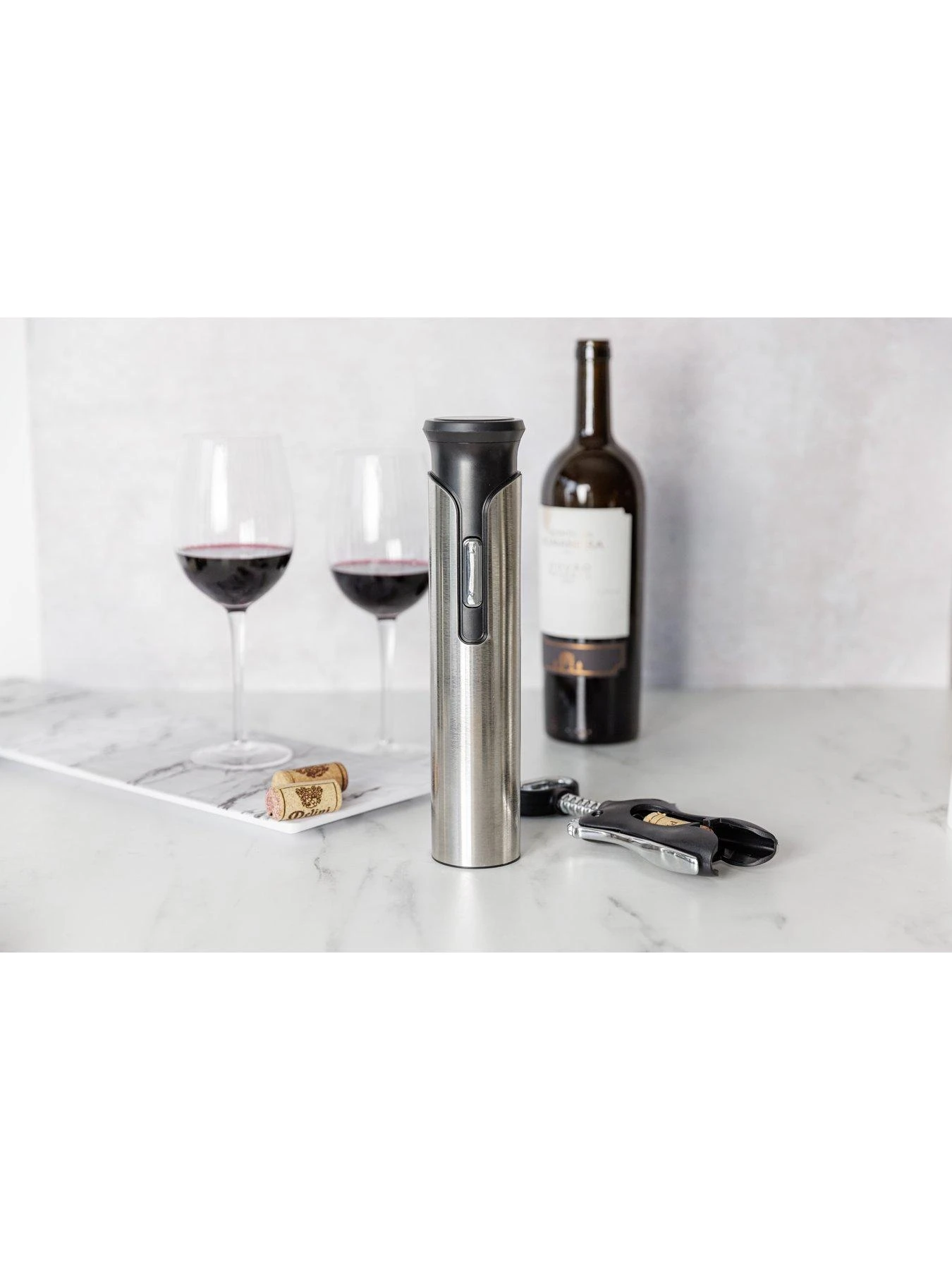 Struggling to uncork wines at family gatherings? A really smart solution to easily open bottles at the dinner table, this electric corkscrew effortlessly removes corks with one touch of a button. Just fit this smart tool on top of the bottle, press the down button and… there you go! The cork is quickly removed. With the non-stick spiral, corks are extracted in one piece so you don’t have to worry about residue being left behind in the bottle. Easily operated with just one hand, this powerful device fits most sizes of wine bottle and it’s suitable for all kinds of cork, including synthetic. Surprise your guests with this handy tool and leave them speechless! Once the cork has been removed from the bottle, you can easily eject it at any time from the stainless steel chamber where it’s kept. The electric corkscrew is run on 4 x AA batteries (not included) and comes with an easy-to-follow instruction manual.