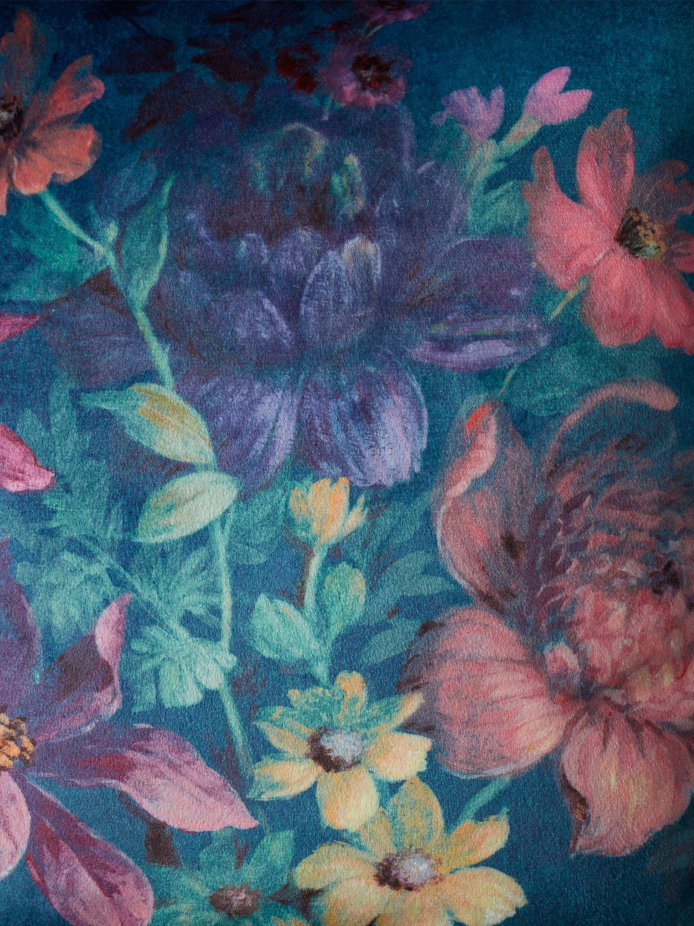 Gorgeous in a bold palette of blue, purple and peach tones, the painterly print sees perfectly placed flowers in full bloom scattered across a teal canvas. Soft to the touch, a fully reversible design allows you to flip it over to reveal a tonal reverse.
