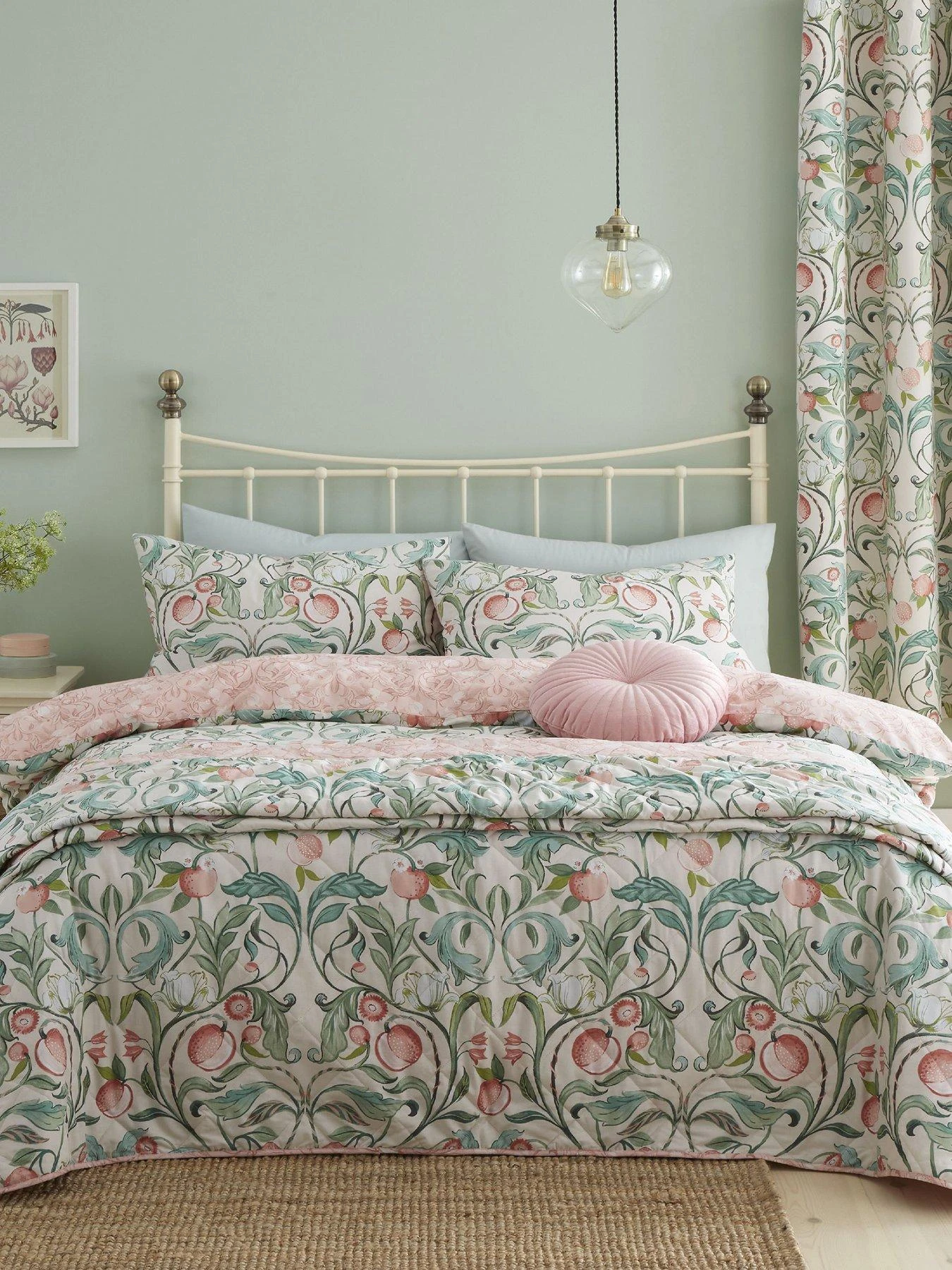 Their stunning neutral backdrop plays host to trailing leaves and bold blooms running from top to bottom in a classy colour combo of blue, green and peach tones. Perfect for creating a calming effect in your space, they look amazing when matched to the coordinating duvet cover set, available separately (see item number VIMIU).