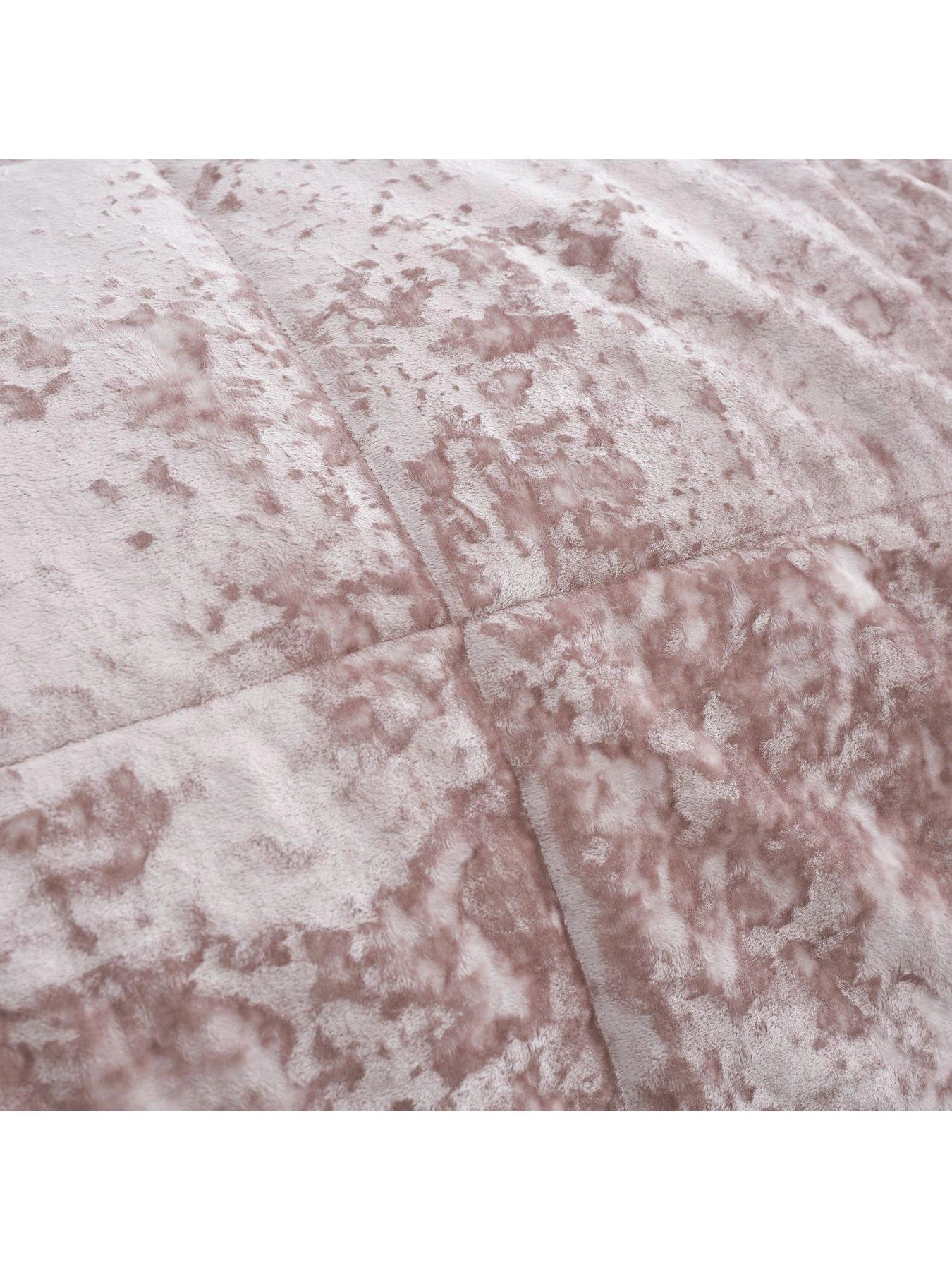 - Soft touch quilted pillowshams in a sensuous blush pink crushed velvet texture that glistens delicately with the light.