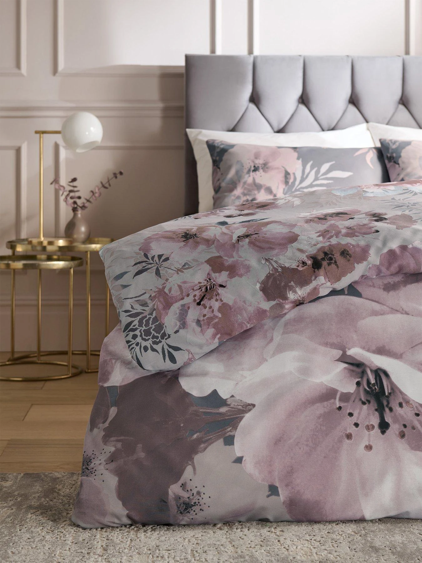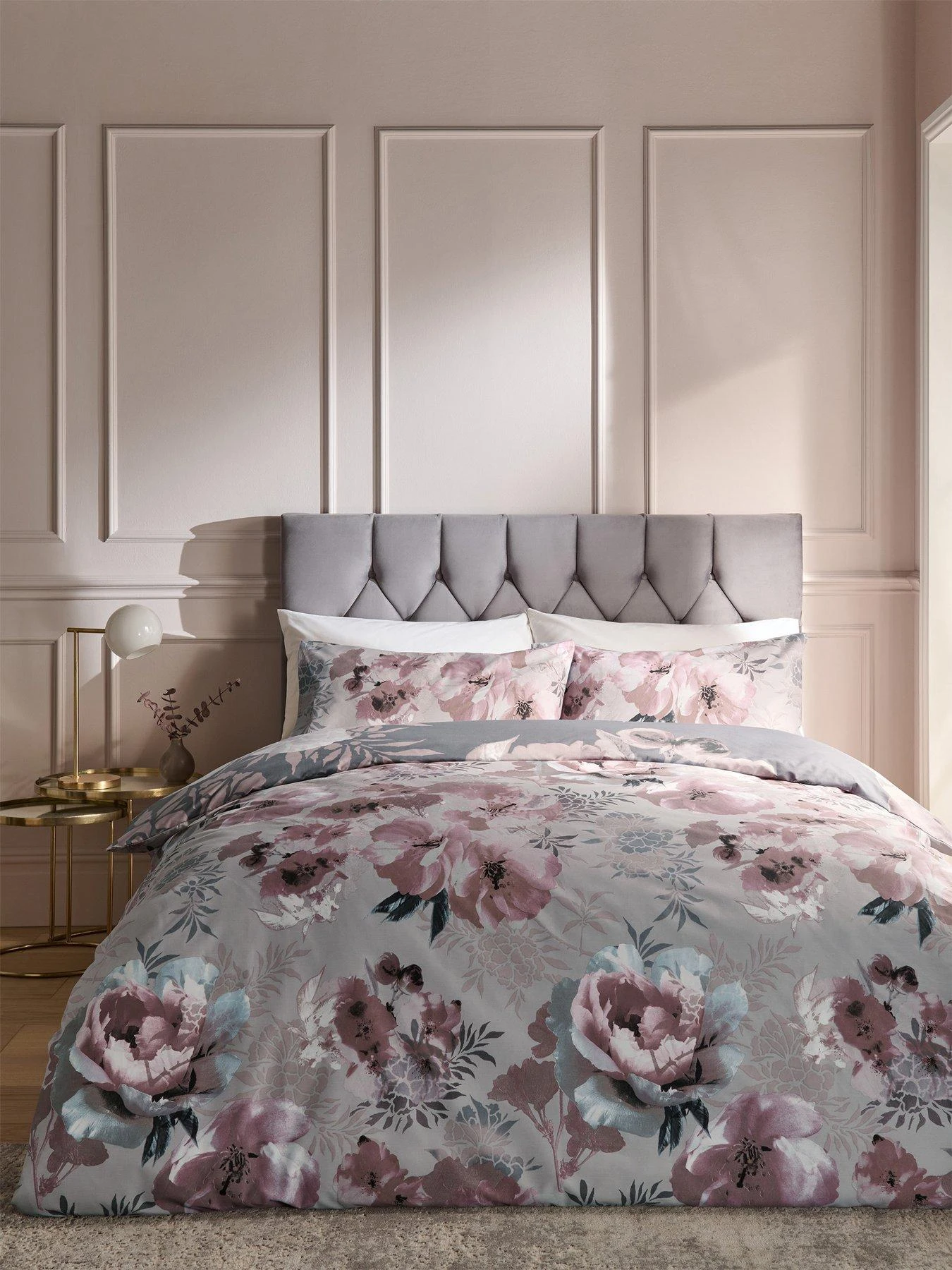 Catherine Lansfield Dramatic Floral Duvet Cover and Pillowcase Set in Single, Double and King sizes – Grey/Pink