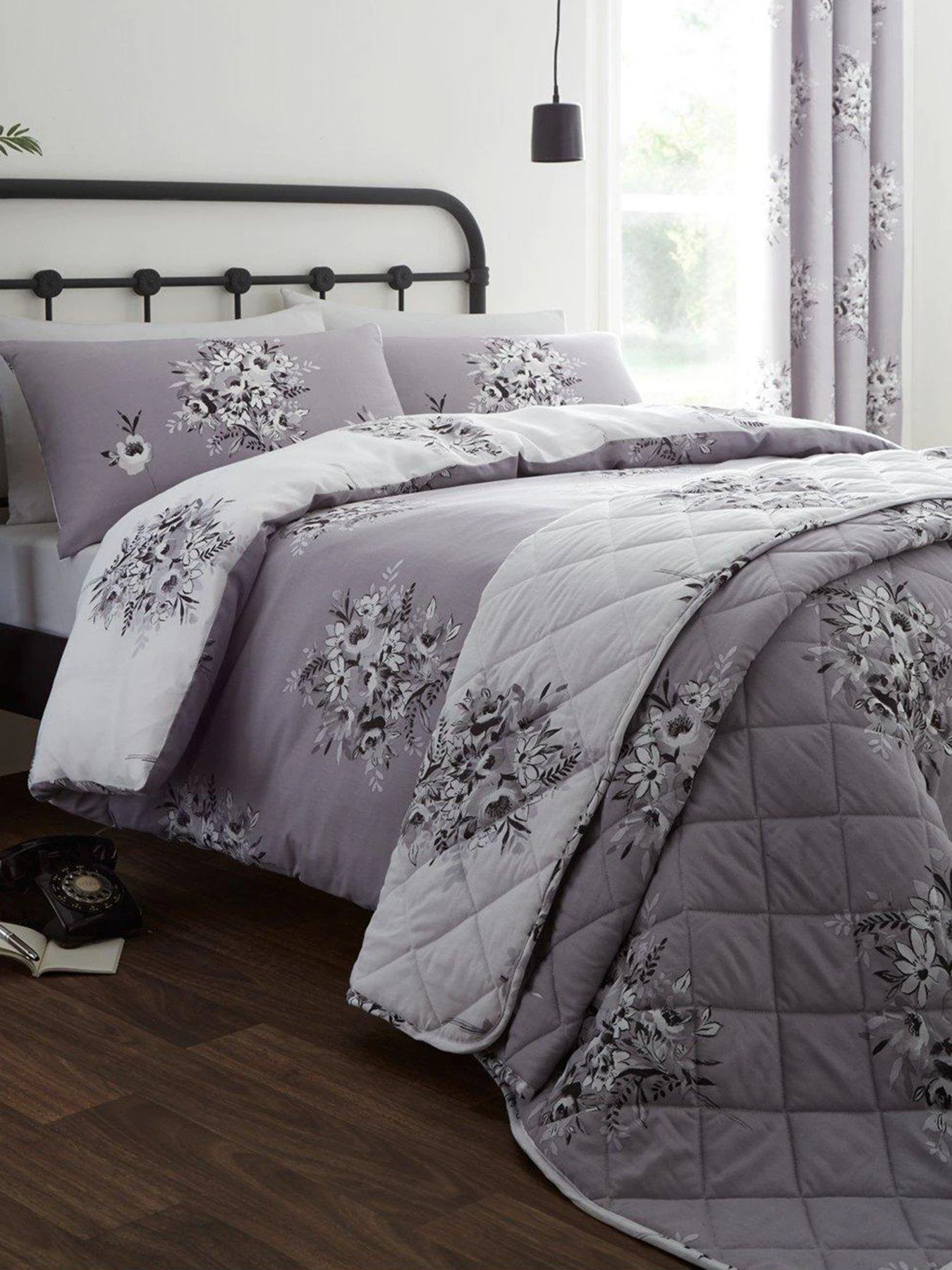 Catherine Lansfield Floral Bouquet Duvet Cover and Pillowcase Set in Double and King sizes – Grey