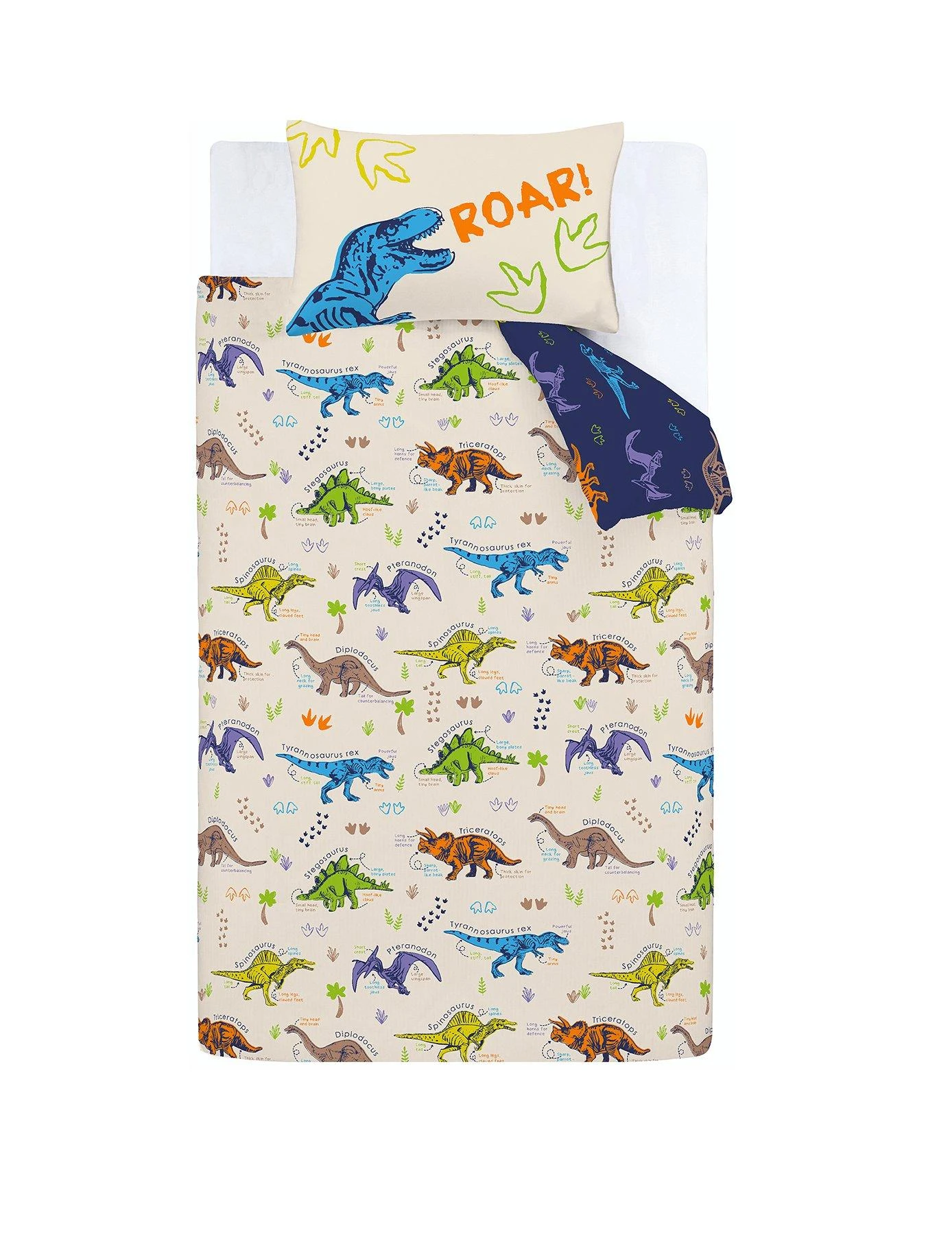 Catherine Lansfield Prehistoric Dinosaurs Natural Duvet Cover and Pillowcase Set in Junior, Single and Double