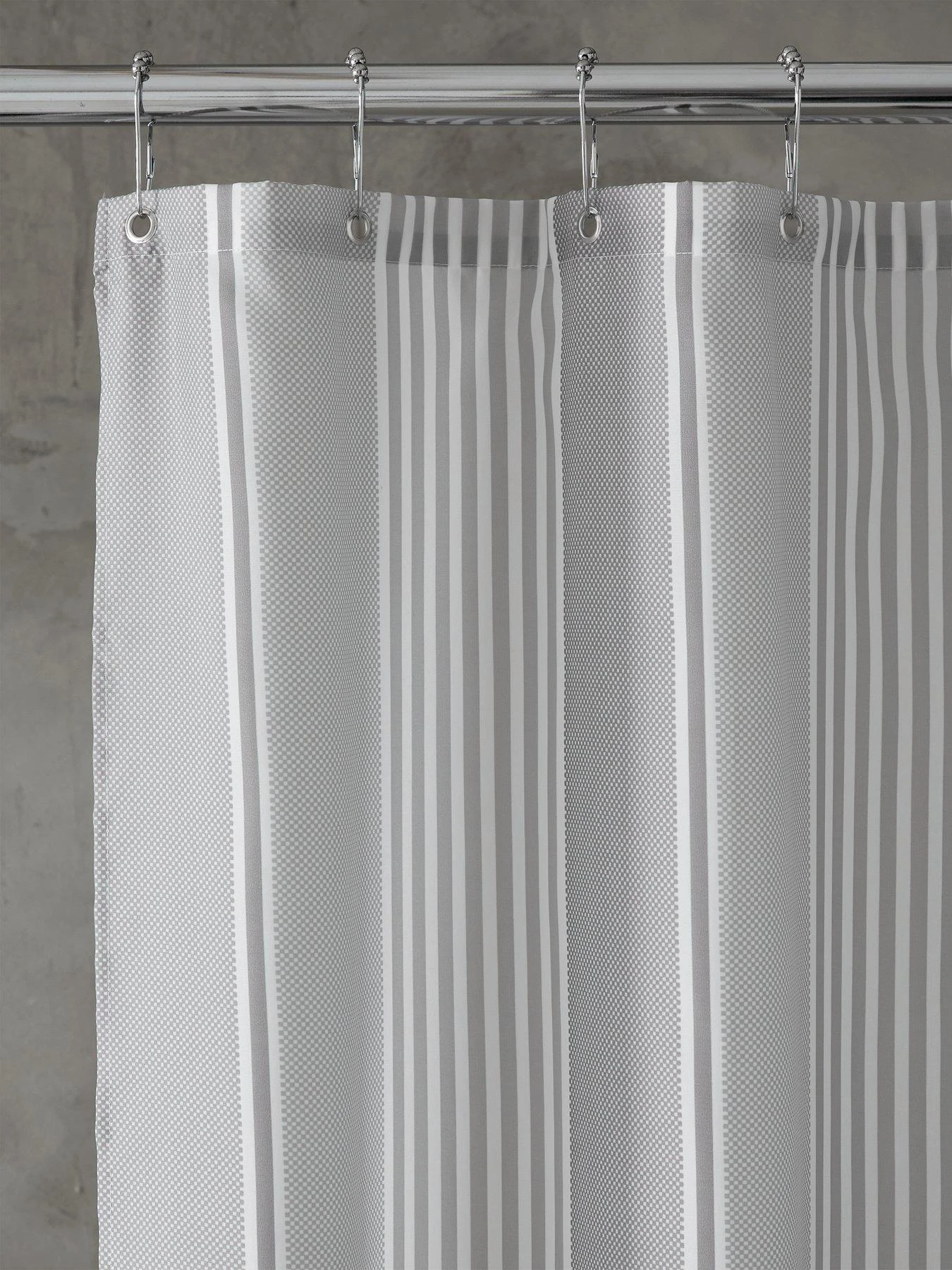 Update your bathroom look with soft textured stripes; stylish and durable with a water resistent treatment and easy fit eyelet header, you can ensure your bathroom is functional and fashionable.