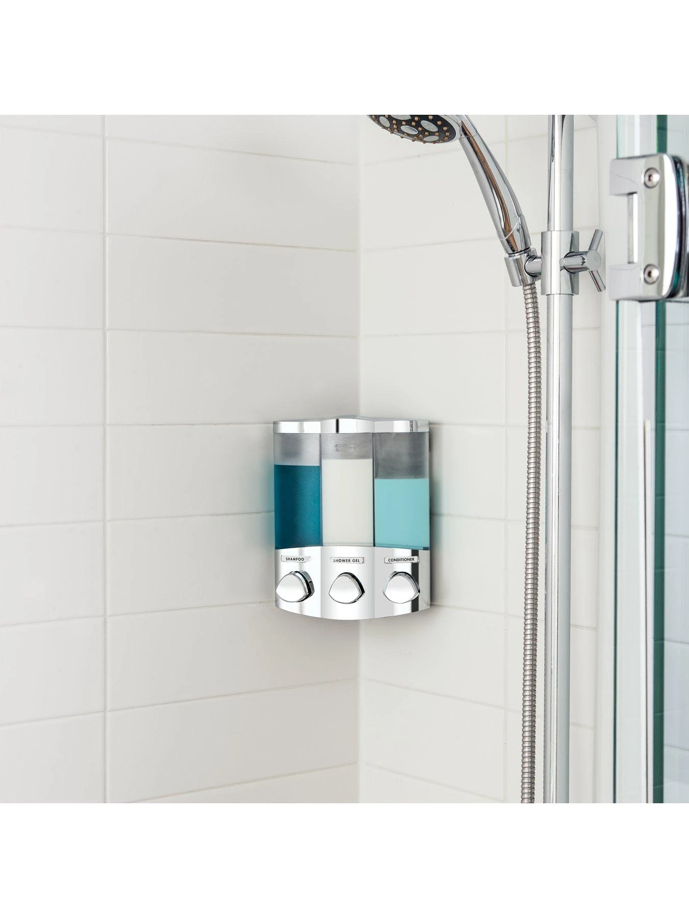 Frosted chambers make it easy to see exactly how much soap, shower gel or shampoo you have left, and when empty it’s easily removed for refilling.