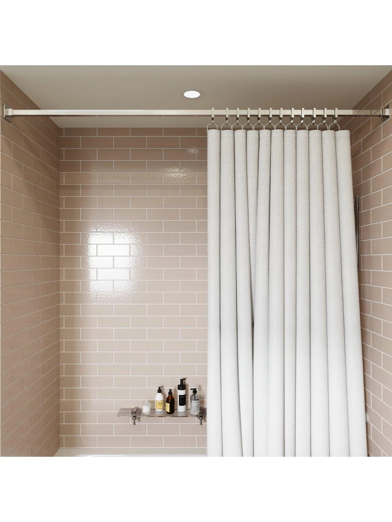 Boasting an on trend geometric squared design, this sleek curtain rail proves that even essential accessories can add a stylish touch to your bathroom.