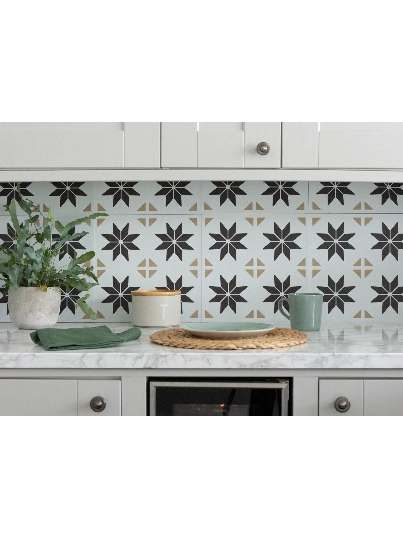 dc fix self adhesive vinyl wall tiles give a seamless neat finish, without the need to grout. The tiles can go over existing flat wall tiles or straight onto a painted plastered wall or shower panel. The tiles are fully waterproof. Please note before application, let the product acclimatise in the room for 48 hours prior and allow 4 weeks for newly painted surfaces. Remove the white backing paper completely leaving the clear film around the sides, this forms a waterproof membrane behind the tiles, place the next tile over this clear film. Use silicone sealant for the outer edges, making it water tight. Avoid harsh chemicals which could damage the surface of the tiles, clean with a damp cloth. For removal use a flat headed screwdriver to carefully prise the tile away from the surface, clean any remaining residue with hot soapy water.