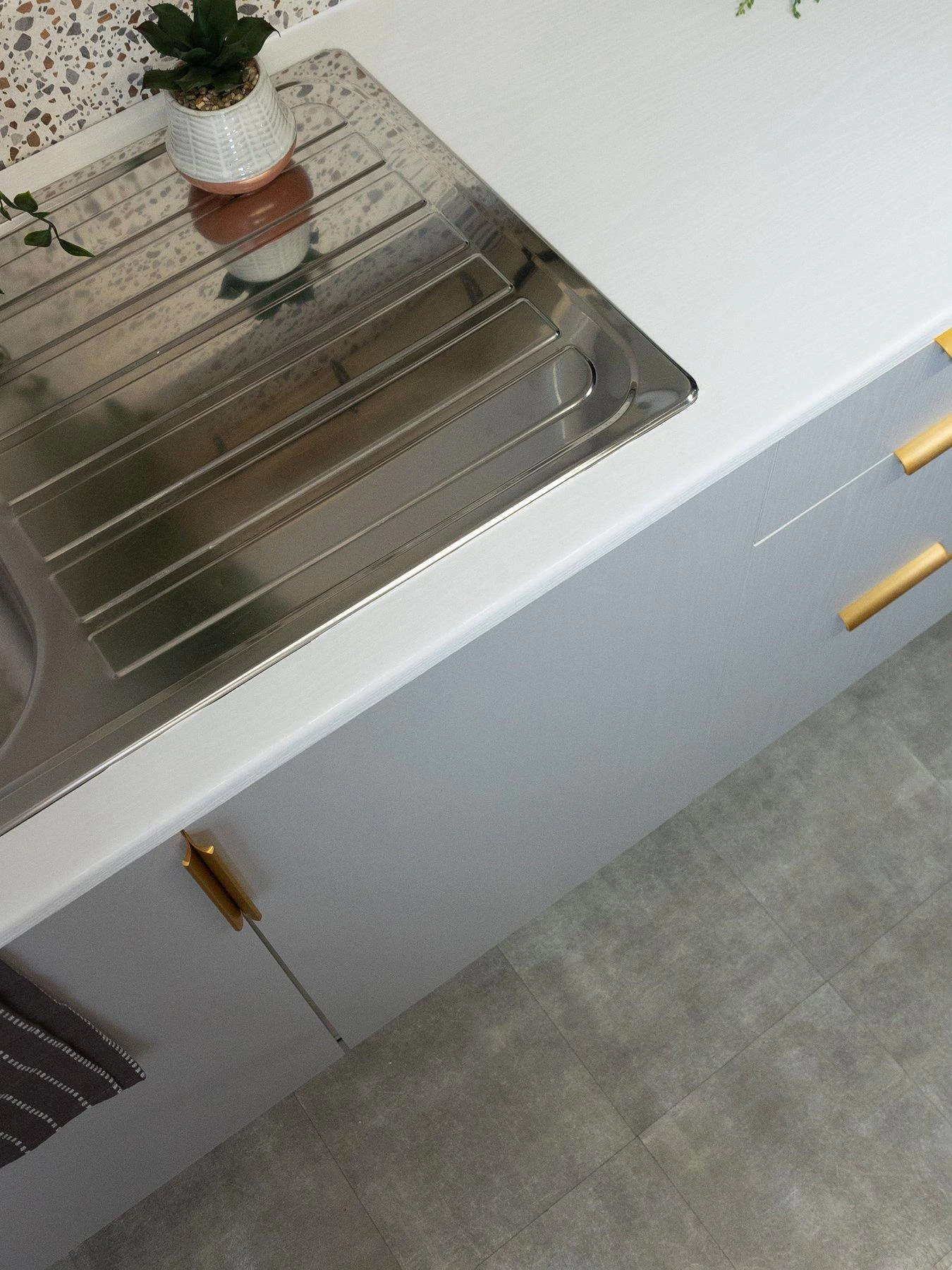Water-based, low-tack adhesion means you can peel and reposition until it’s lined up perfectly, and natural pliability means it’ll wrap around worktop edges and doors. For added versatility, though, you can also gently warm it with a hairdryer, which makes it even easier to stretch over your chosen surface.
