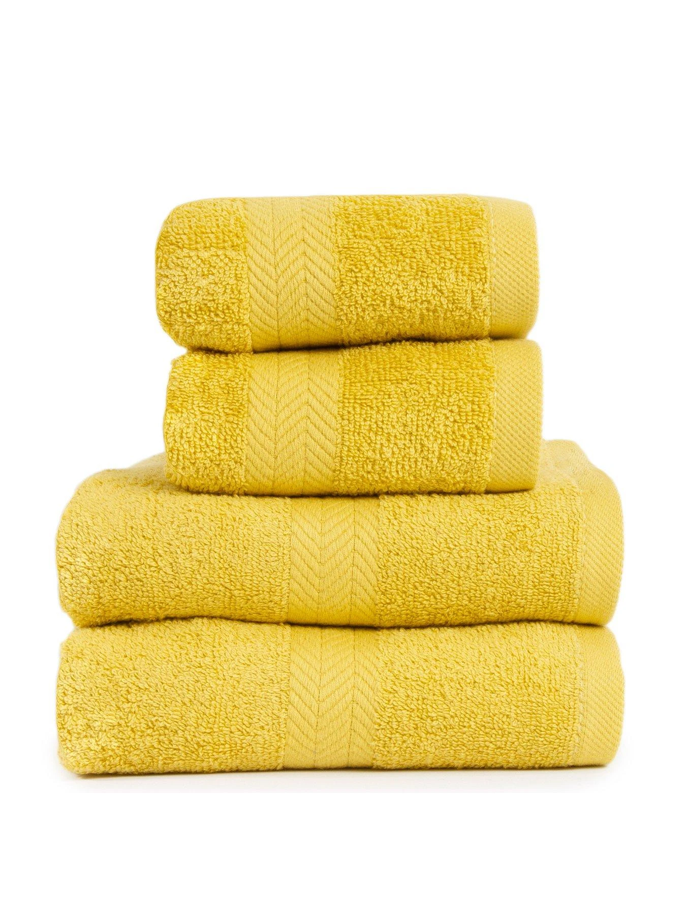 Containing 2 hand towels and 2 bath towels, they’re made from 100% cotton with a 450 gsm weight. The lightweight fabric dries quickly too, so you won’t need to worry about having to use a damp towel the next time you get a bath or shower. In a bright saffron colour scheme, these towels are easily matched to neutral décors.