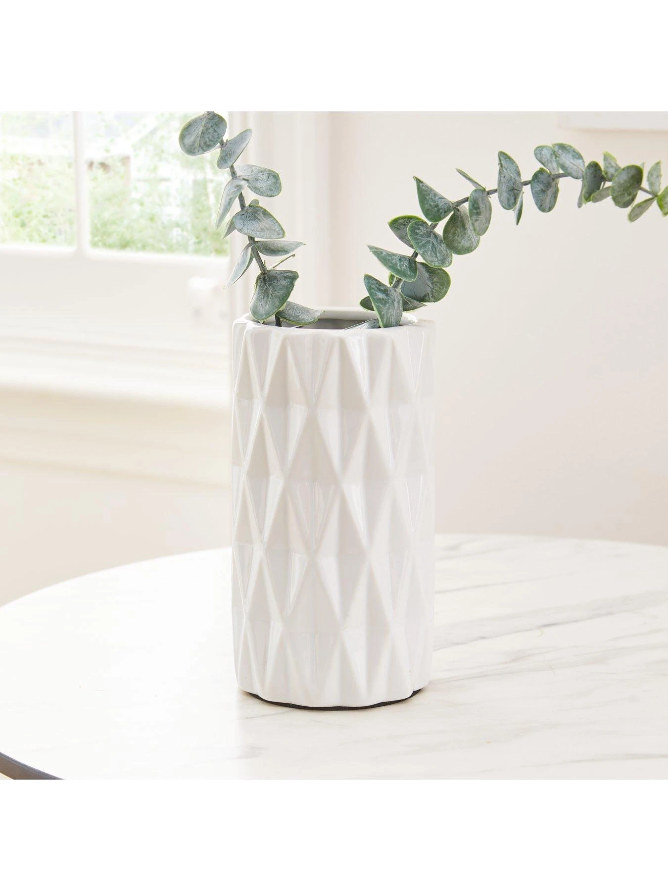Standing 20 cm tall in a gorgeous white colour scheme, it’s easily matched to most contemporary décors with a faceted diamond pattern that runs all around the exterior, along with a sparkling glazed finish.