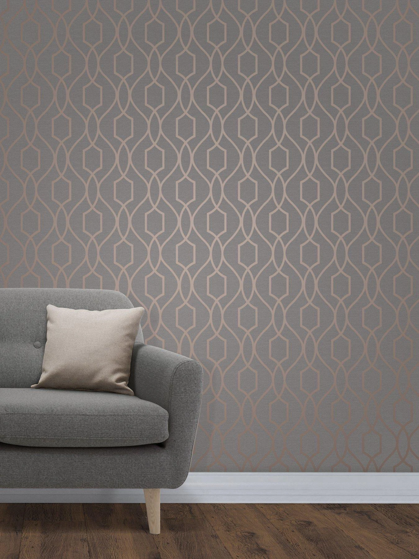 Fine D????cor Apex Geo Trellis Copper & Charcoal Wallpaper