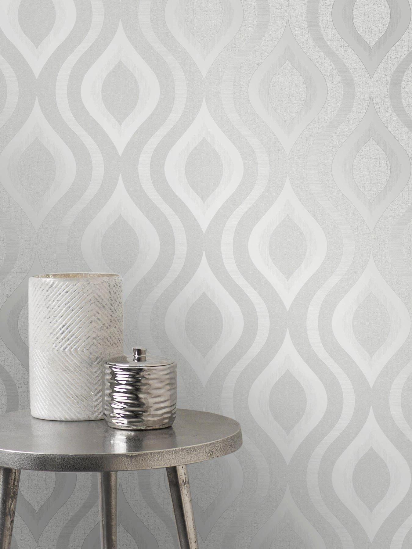 With a modern vibe, this geometric print brings elegance to walls. This dazzling pattern shines with silver metallic ink and glitter details.