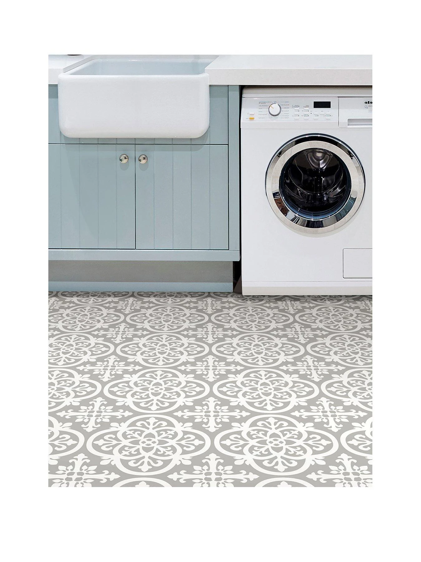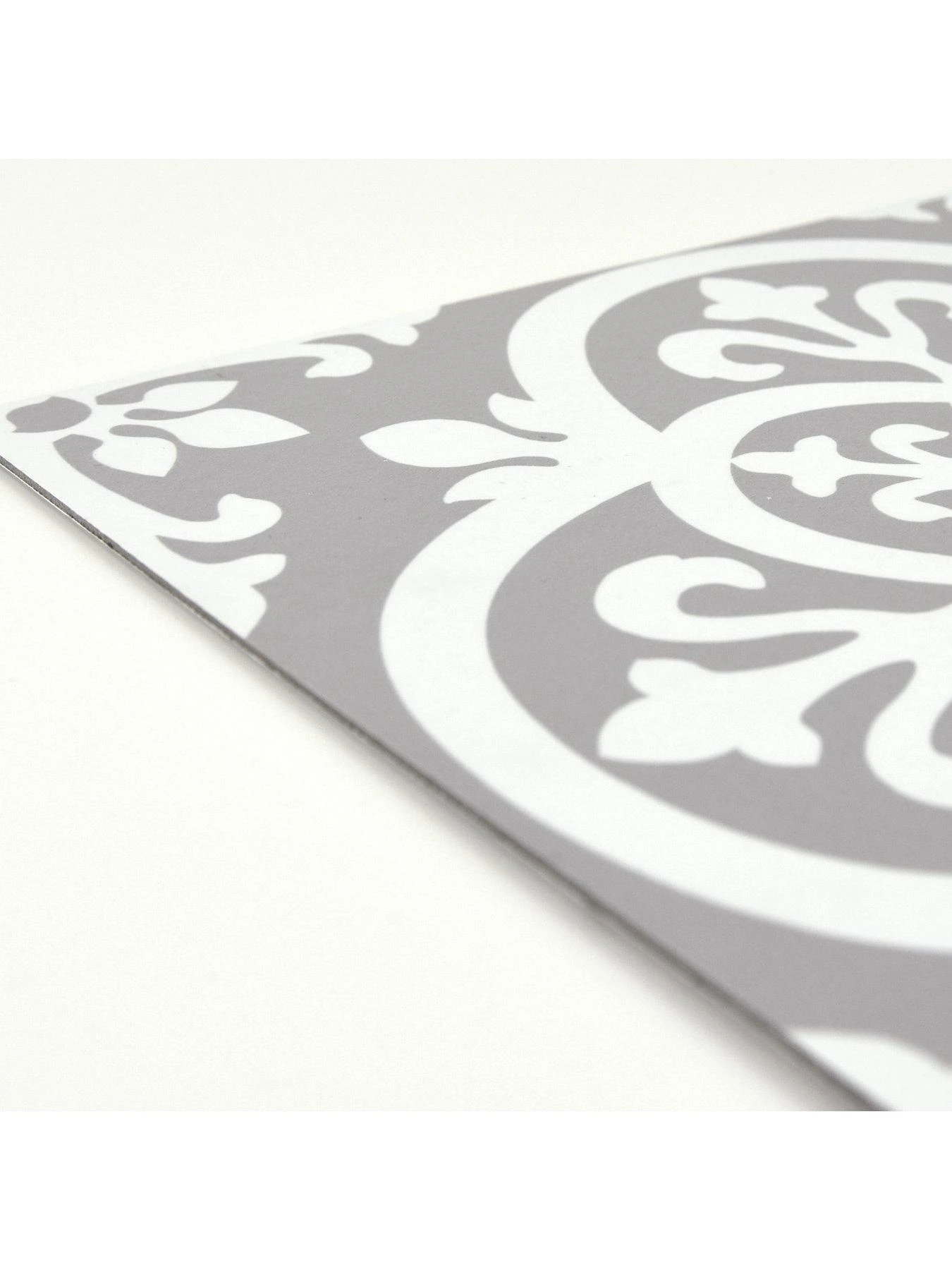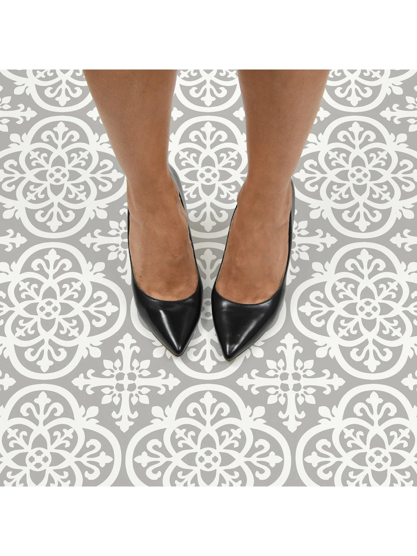 With light grey and white hues, these floor tiles have a chic farmhouse style. Their intricate ironwork design has a gothic flair. Medina Peel & Stick Floor Tiles Peel and Stick Tiles contains 10 pieces on 10 sheets that measure 12 x 12 inches.