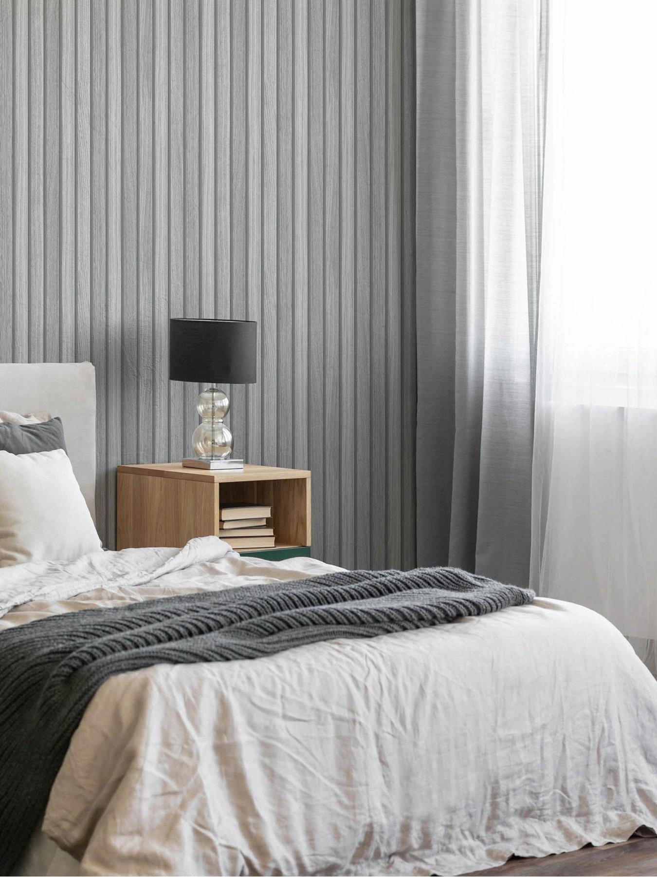 This seasons top trend is panelled walls and this cool contemporary grey wooden panel design creates a modern look in any home