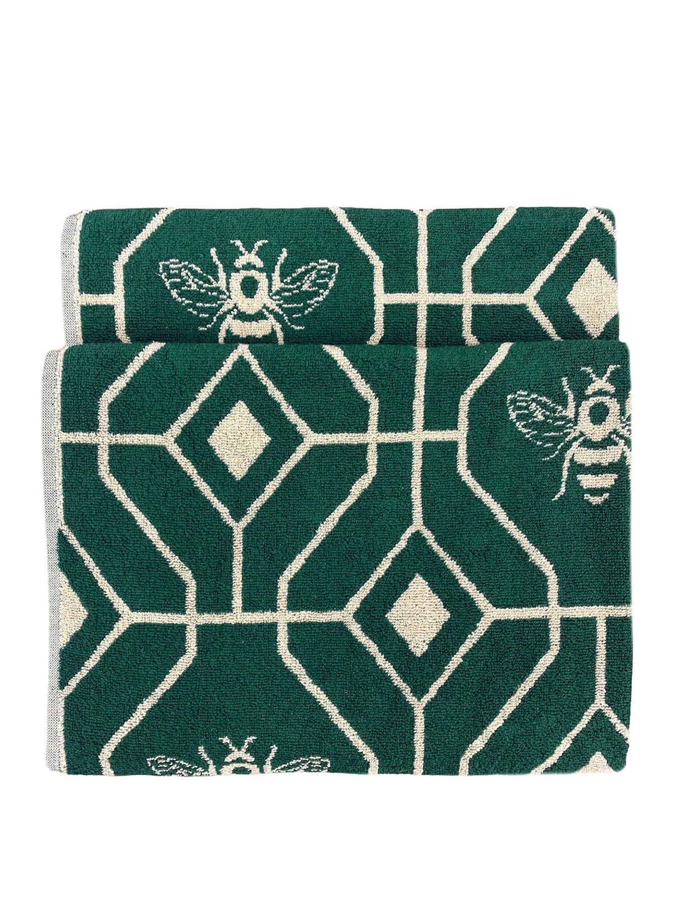 Make your bathroom buzz with the Bee Deco Bath Towel. Featuring a honeycomb inspired geometric design with buzzing bumble bees, this cotton hand towel is the perfect addition to any modern, colour-loving home! This product is certified by OEKO-TEX showing it has been sustainably made.