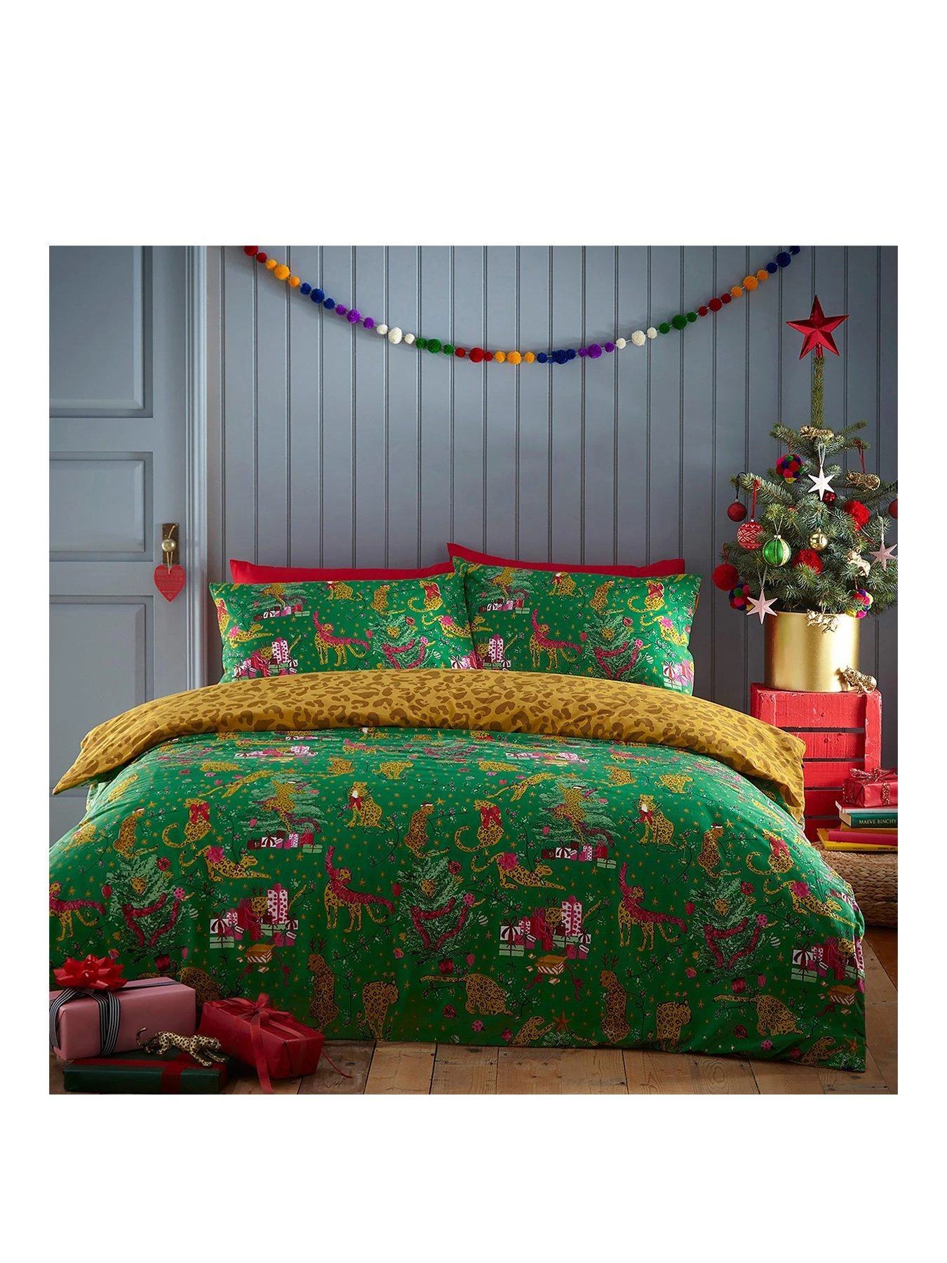 Furn Purrfect Christmas Duvet Cover and Pillowcase Set in Single, Double and King sizes – Green