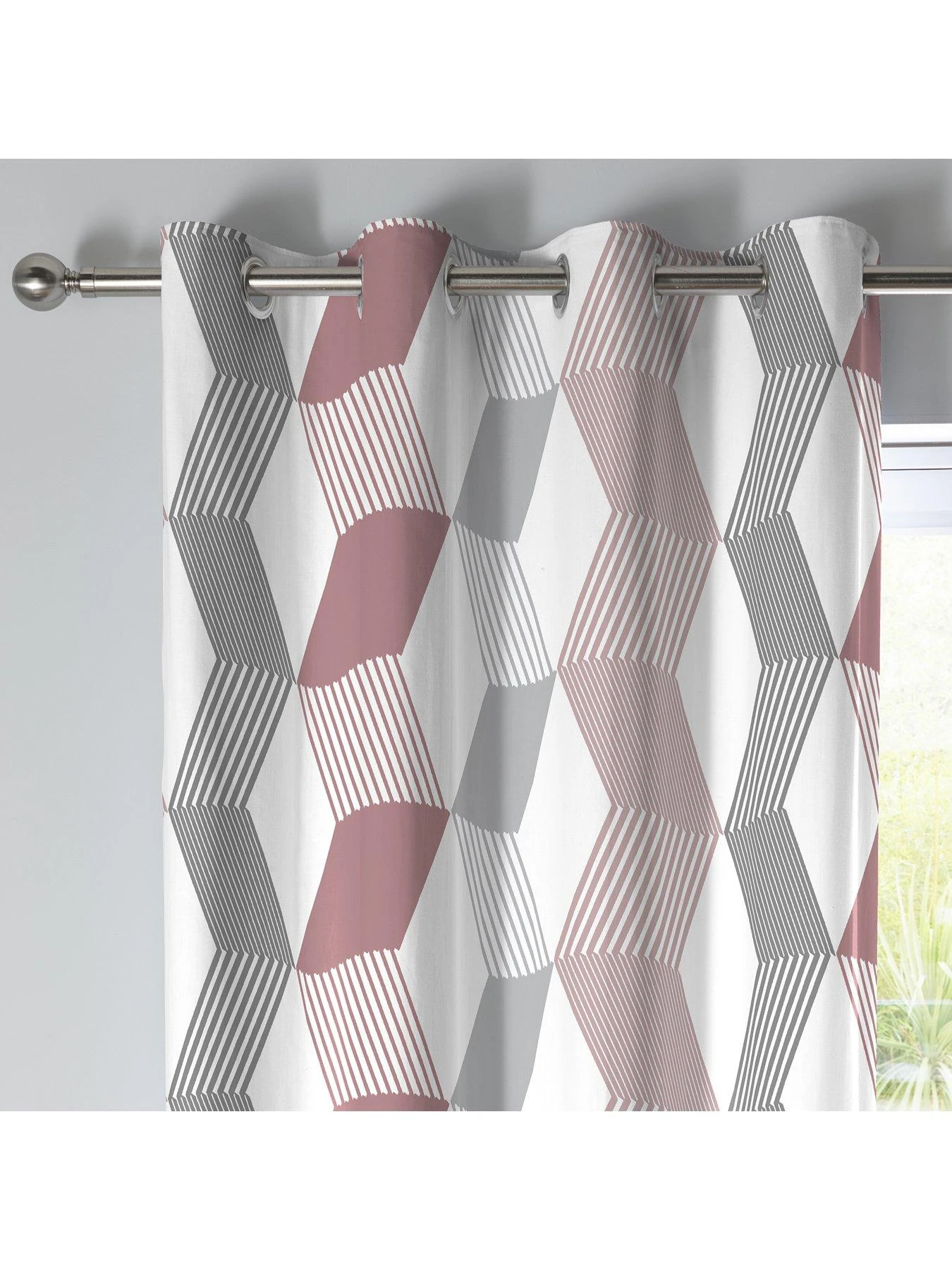 - Blush pink chevron design of the Magna curtains will add contemporary flair to any room. Crafted from 100% cotton & fully lined to improve the drape.