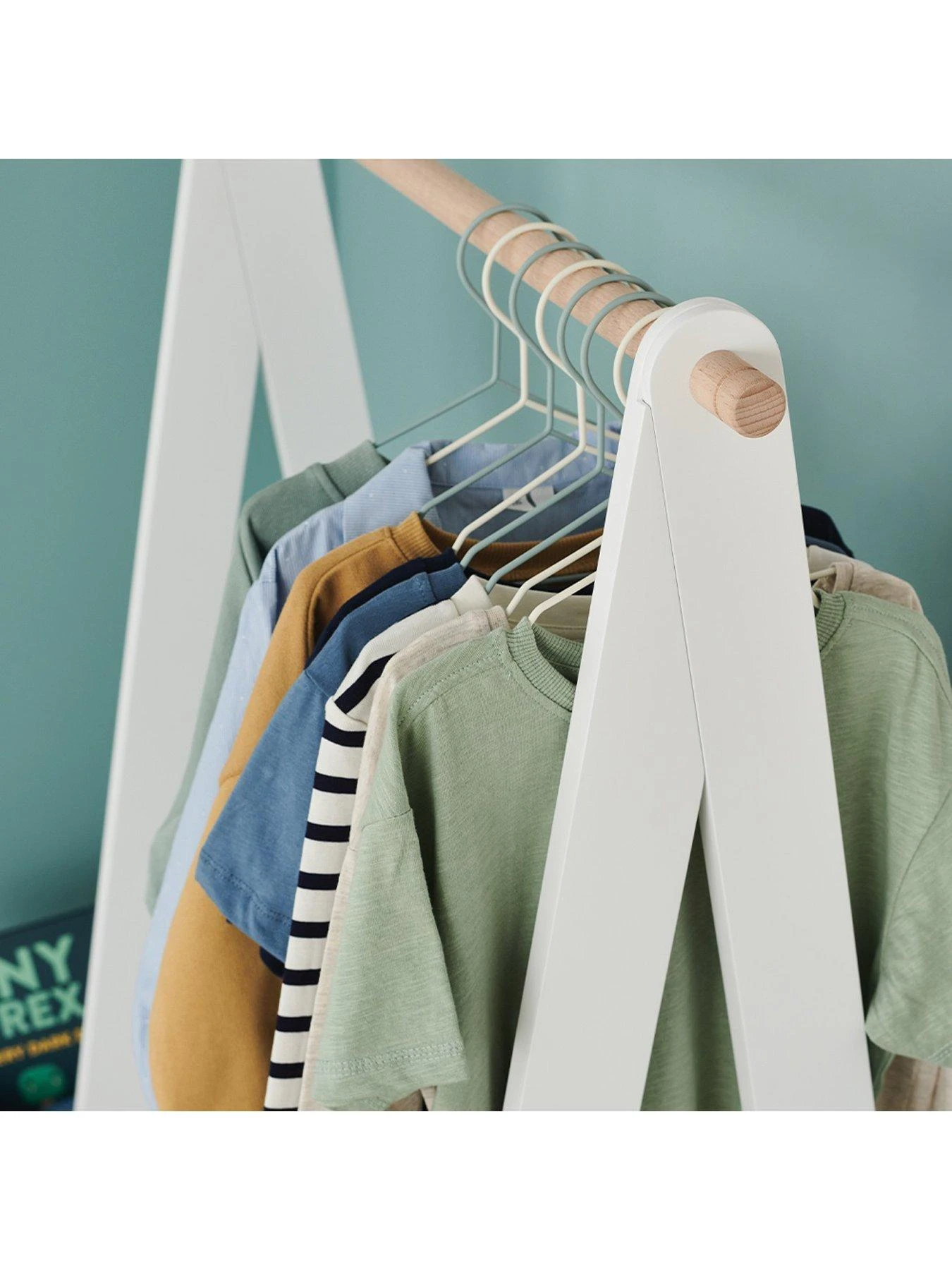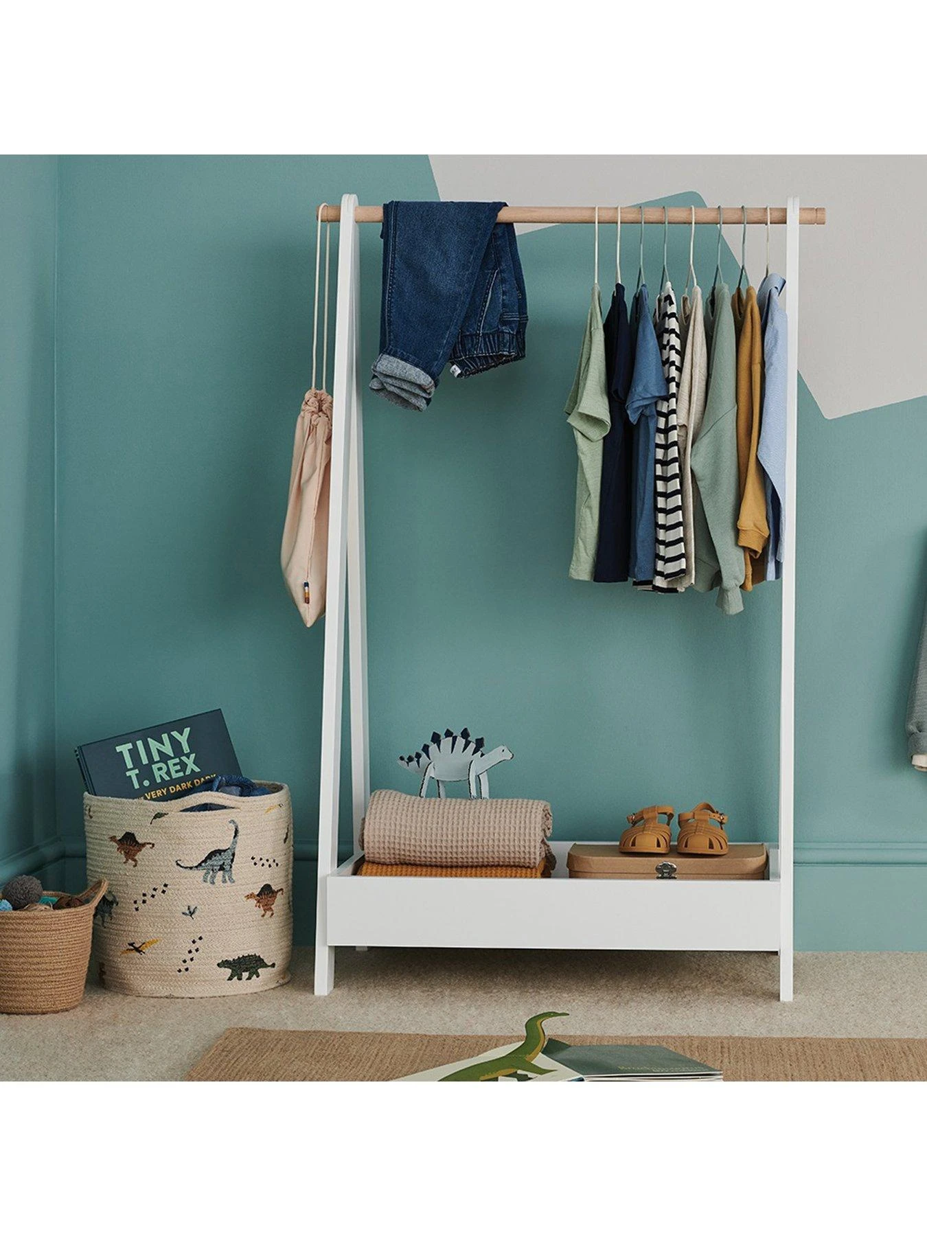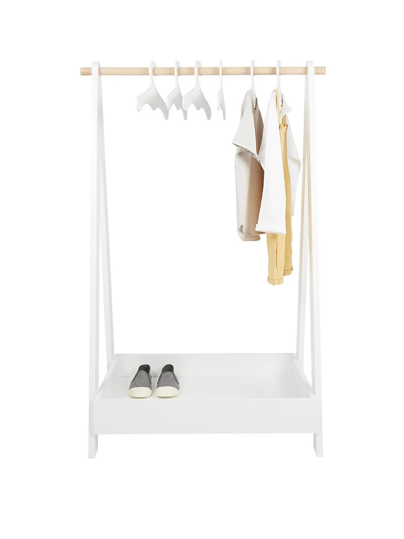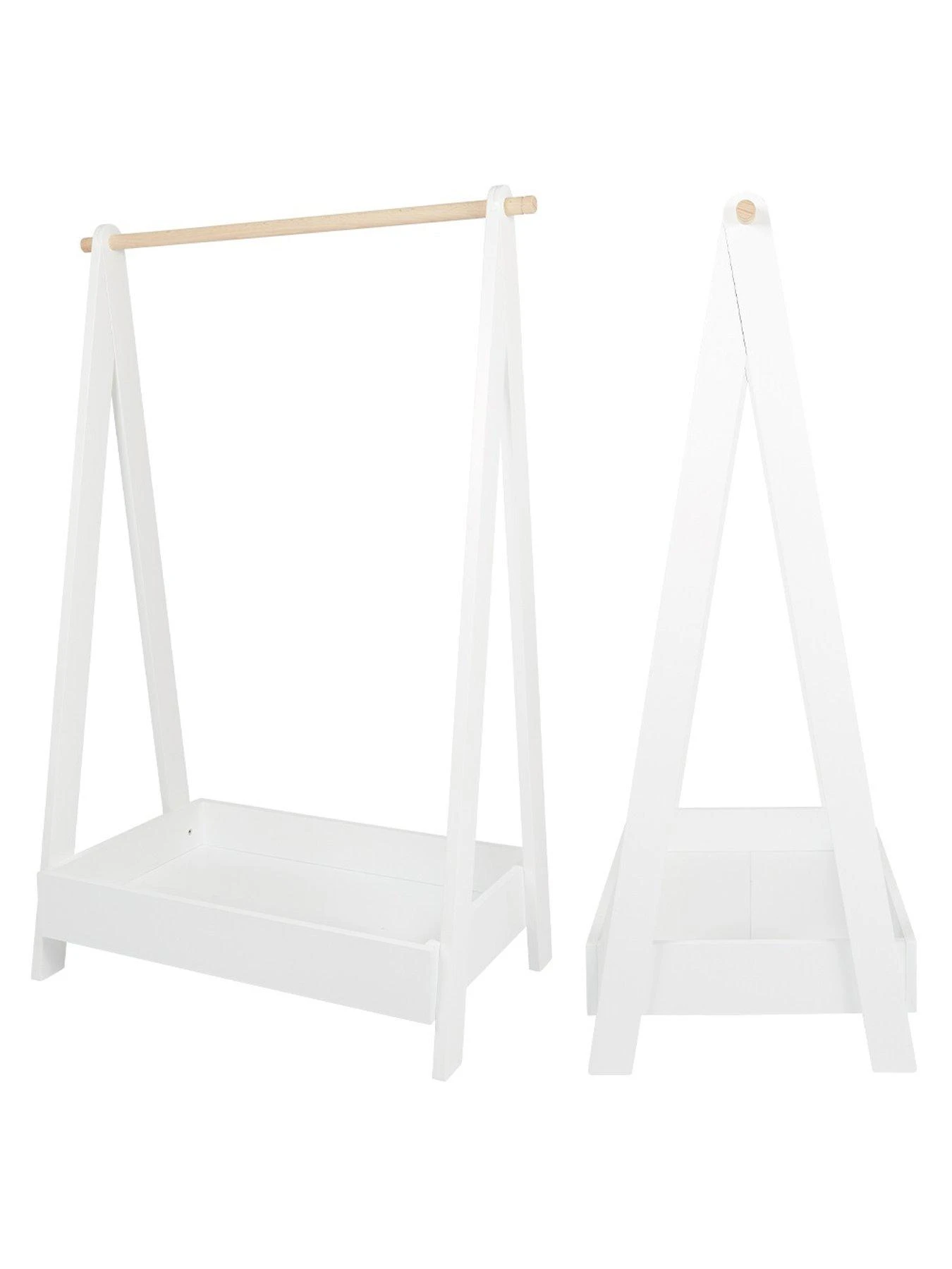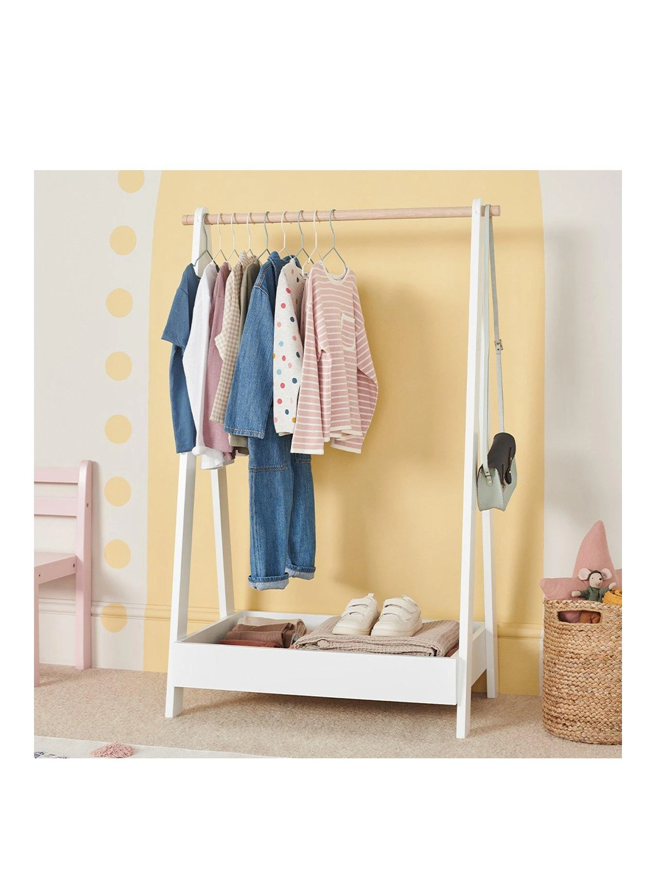 Ideal for helping mini fashionistas get ready for the day ahead or for displaying their favourite dressing-up outfits, it comes in a white painted finish with a contrasting natural wood hanging rail.