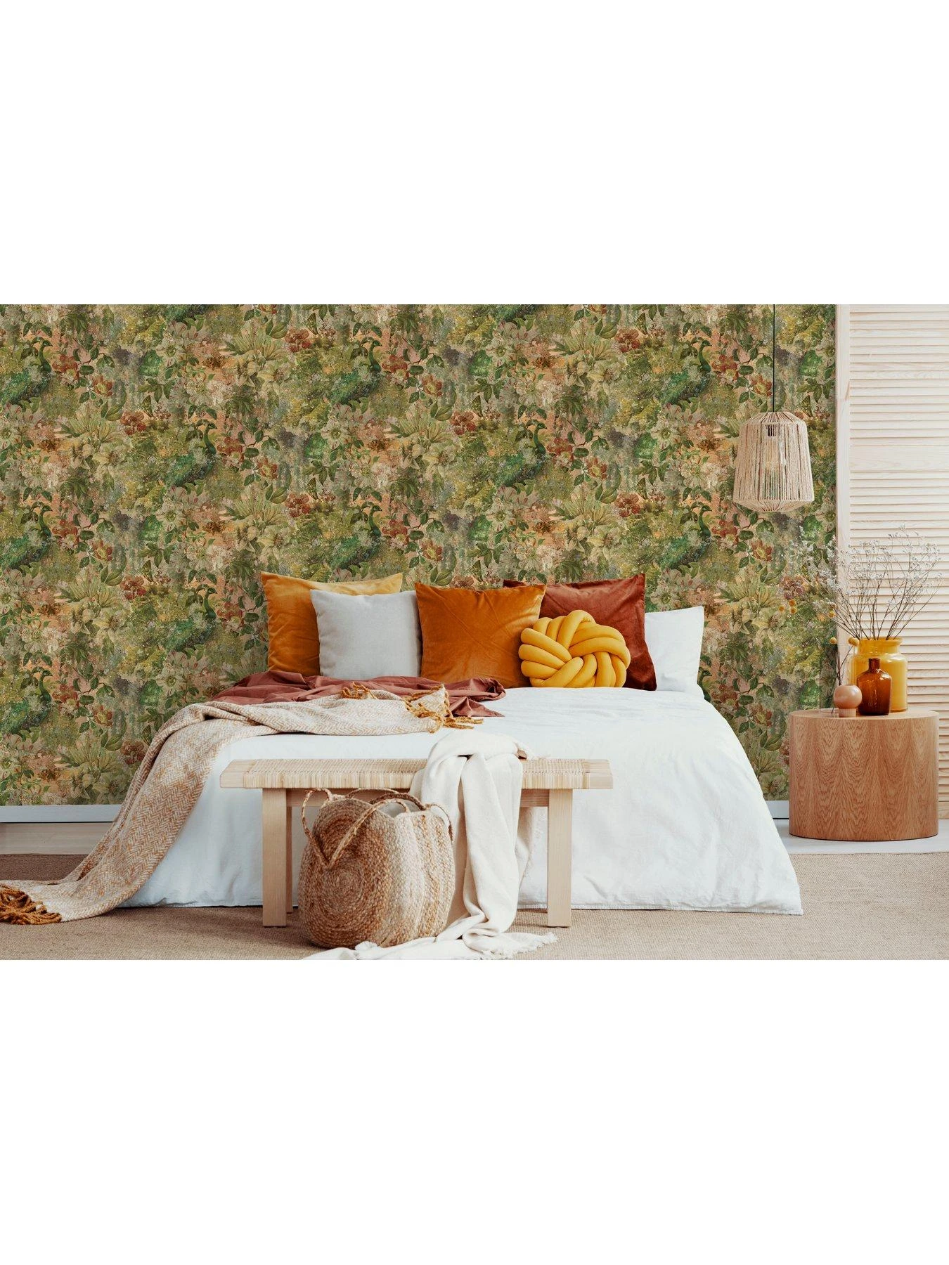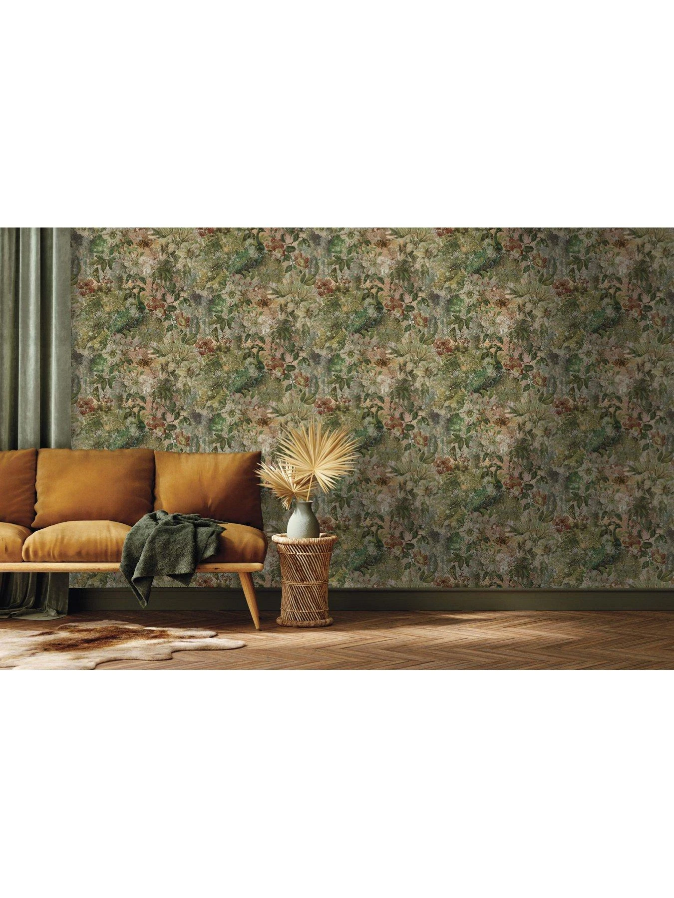 The Vintage Peacock Wallpaper will bring a unique focal point to any room in your home. This exquisite design showcases graceful peacocks and delicate butterflies amidst a weathered tropical pattern crafted with natural paint textures, against a subtly textured matte backdrop. Simple to install, this top-notch wallpaper is perfect for creating a stunning feature wall or seamlessly covering an entire room for a cohesive look.