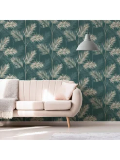 Fine Décor Fine Decor South Beach Palm Leaf Emerald Wallpaper