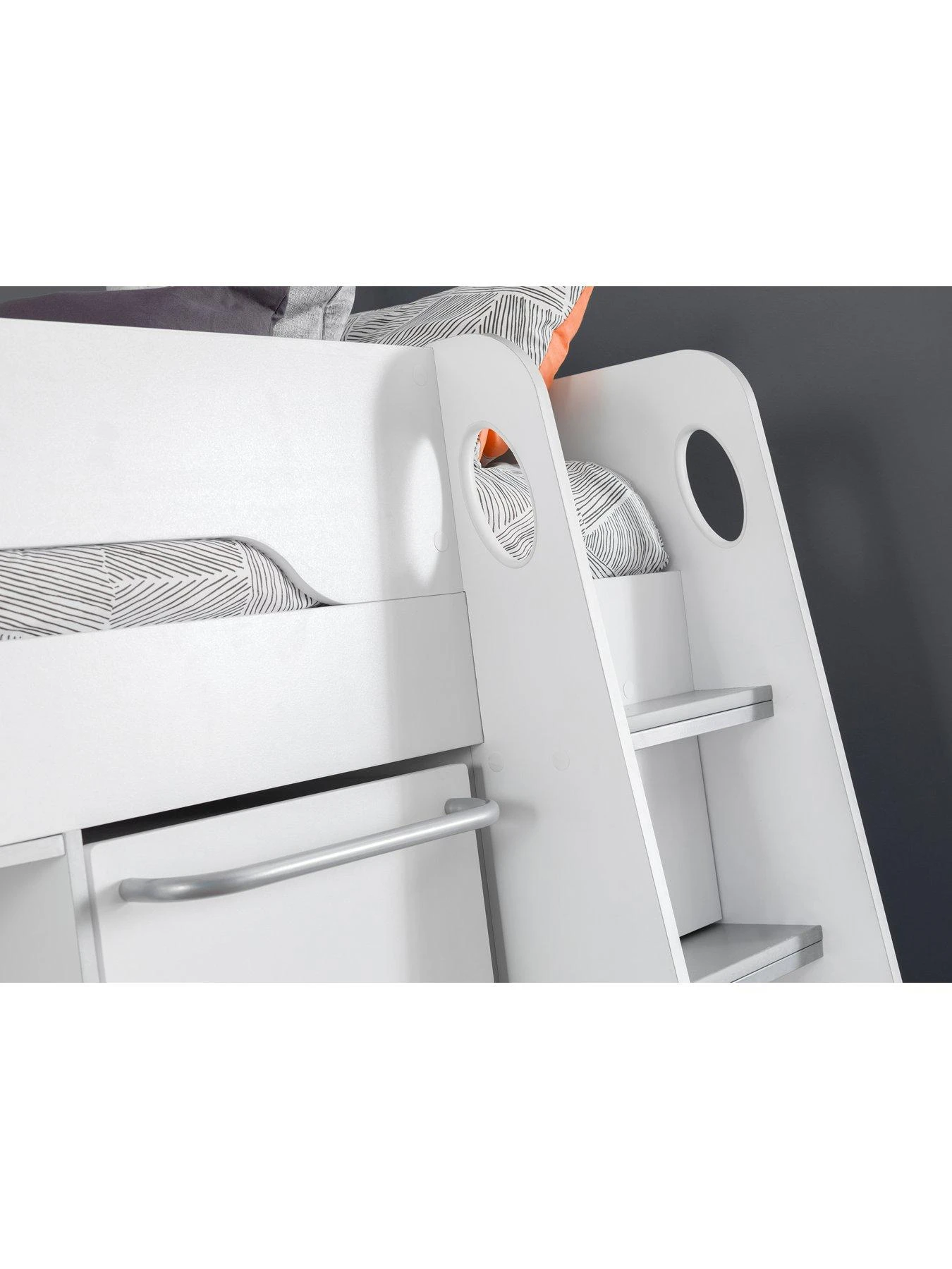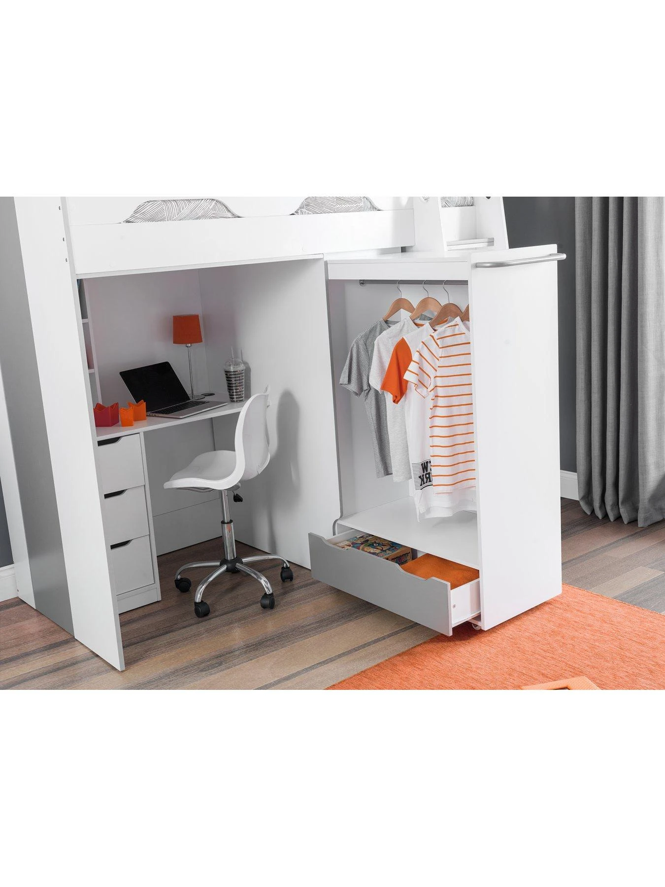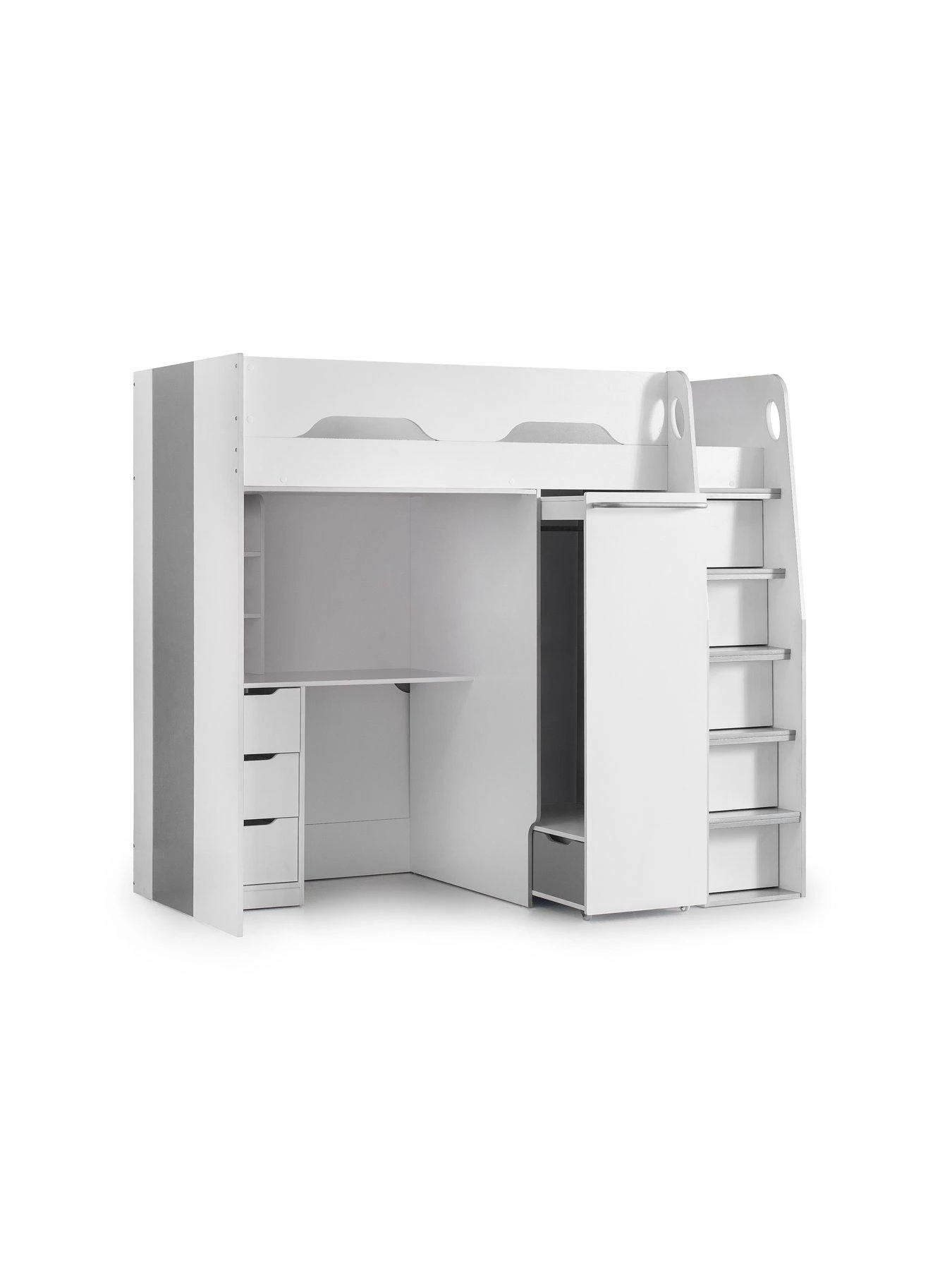 Julian Bowen Max High Sleeper Bed with Desk, Drawers, Pull Out Wardrobe and Hidden Cupboards in White