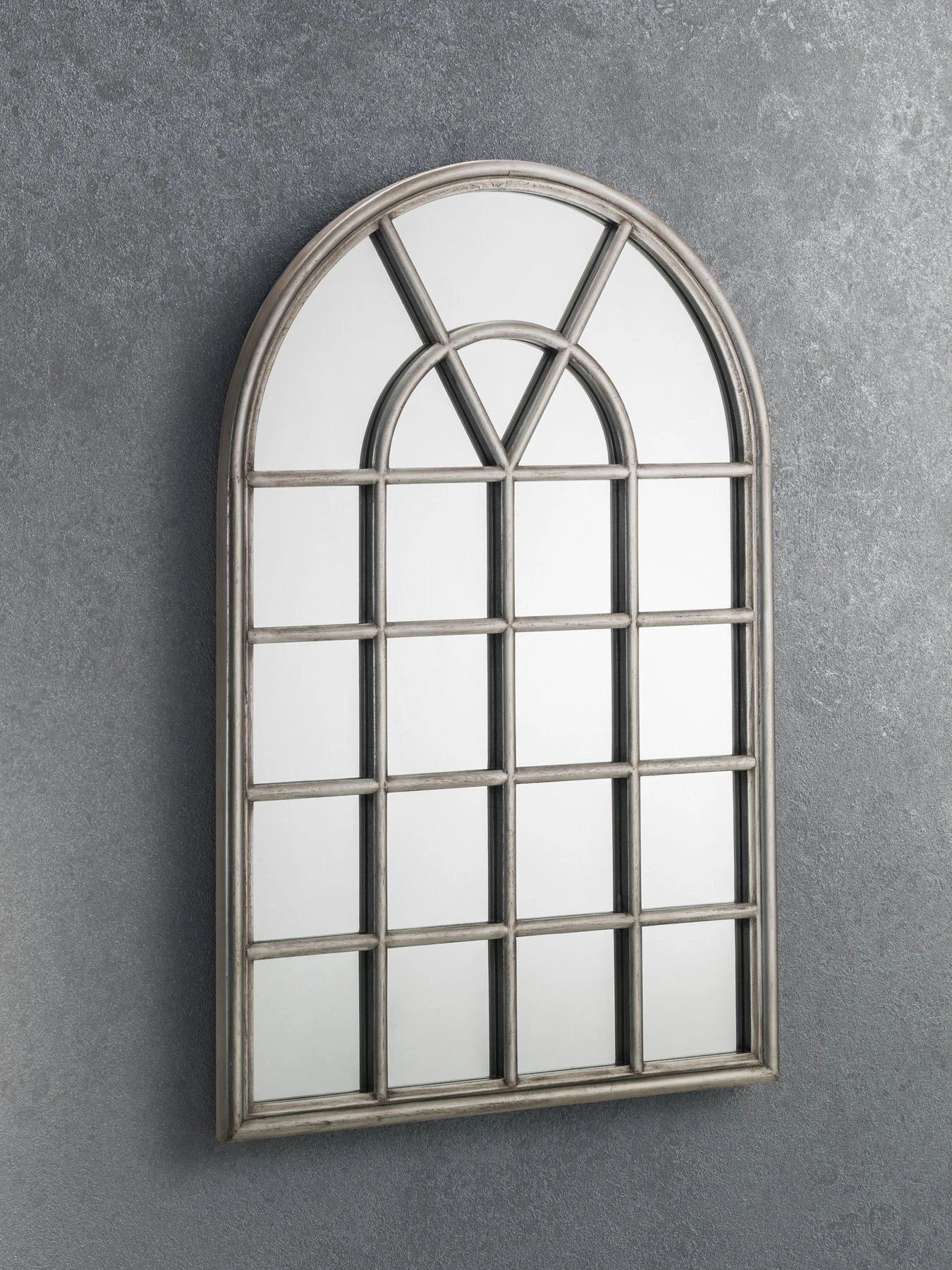 Measuring 60 x 90 cm, the distinctive design takes inspiration from classic Georgian styles, with an arched top and beautiful pewter-toned frame. Hung above a mantelpiece or sideboard, this mirror is perfect for dramatically increasing the perception of light and depth in your home.