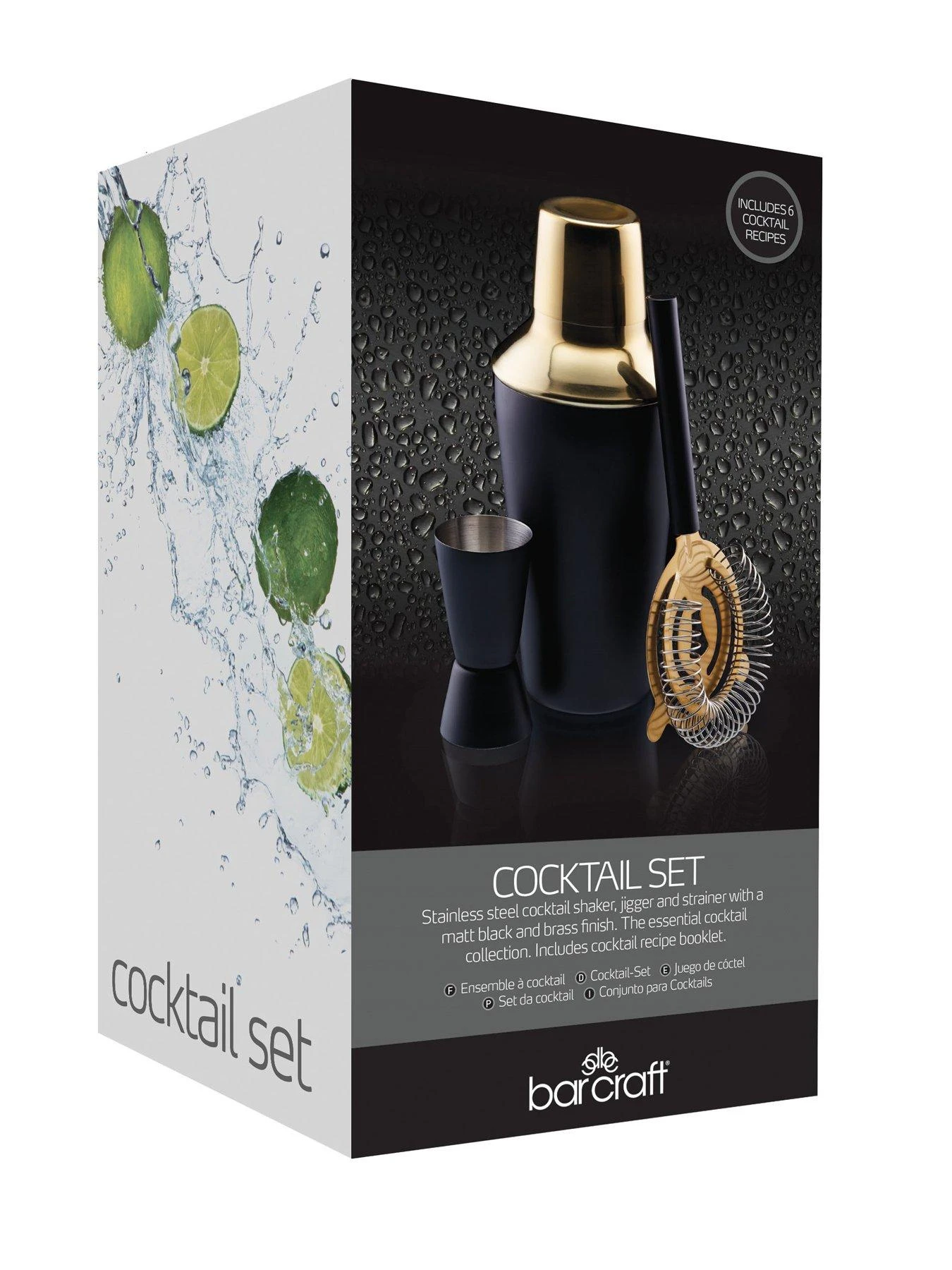 Kitchen Craft BarCraft 3 Piece Black and Brass Cocktail Making Set