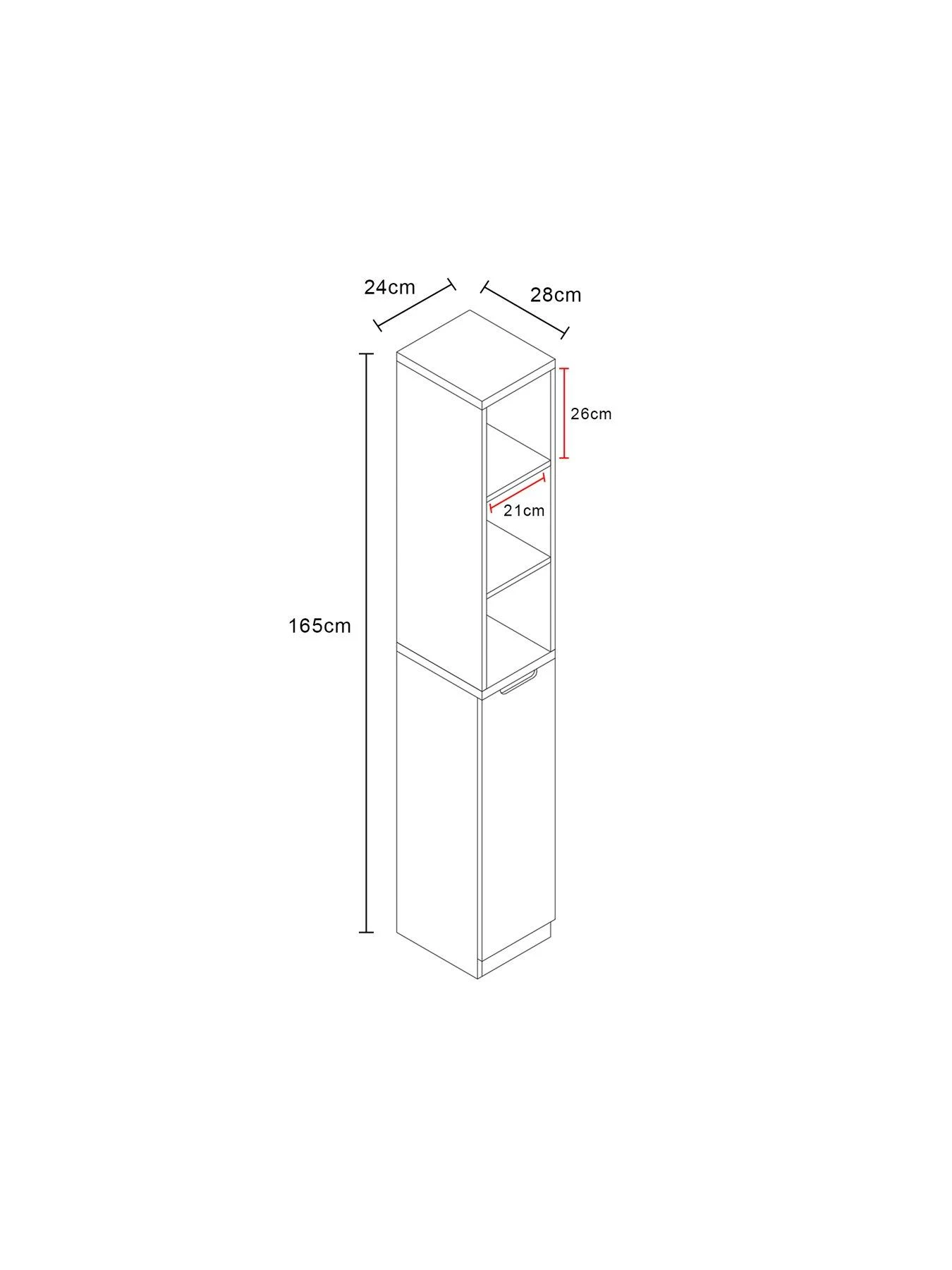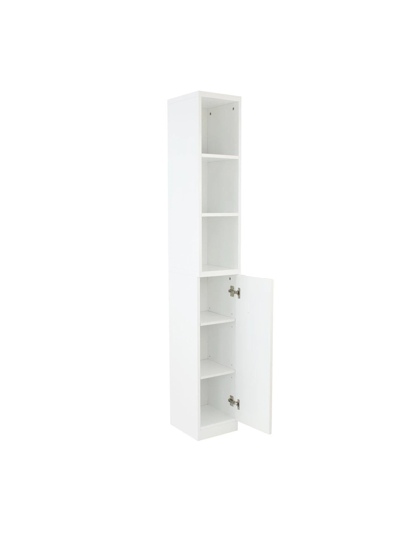 In a shiny high gloss white that catches the light, it has a tall, narrow design (160 x 50 cm) that provides lots of room for bathroom essentials on a small footprint.