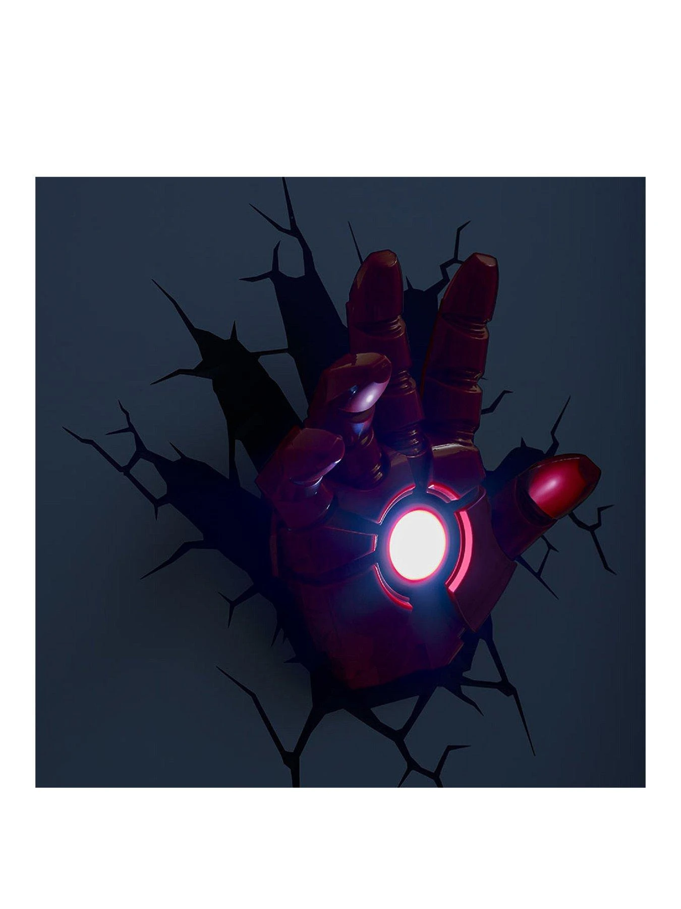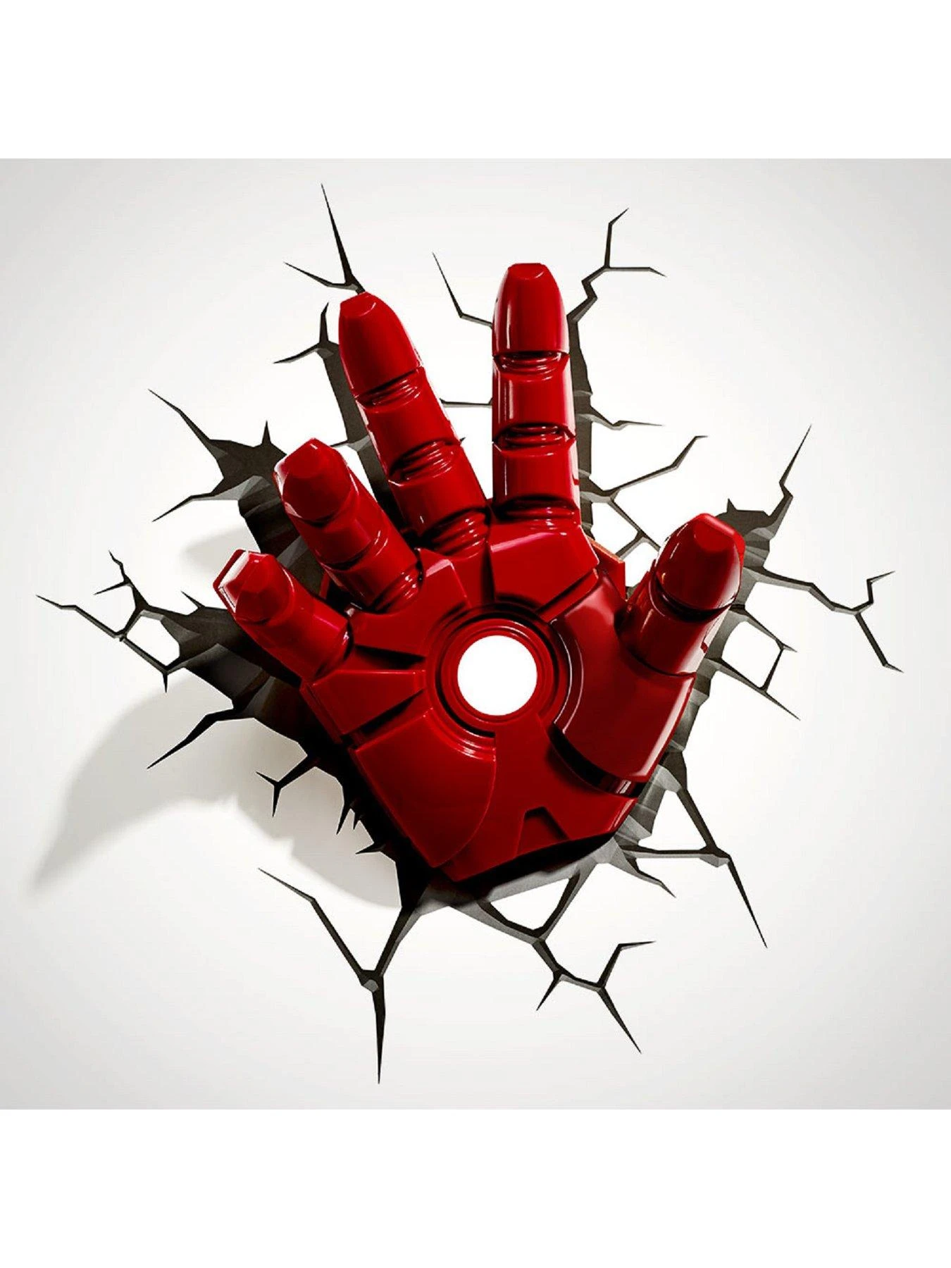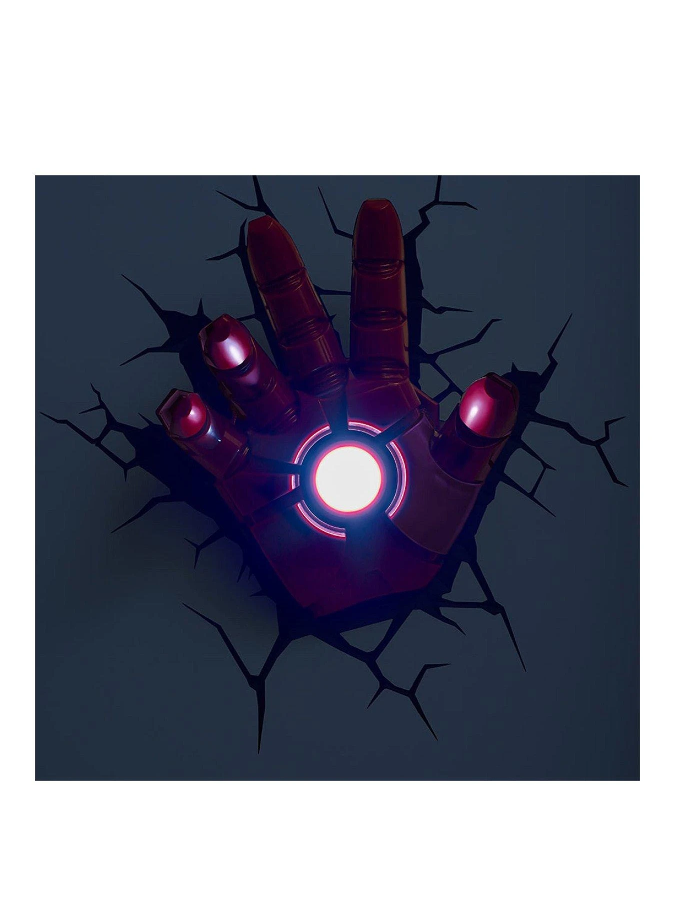 Be in awe as Iron Man uses his hand to light up the room. Includes a 3D crack sticker to help the fist break through the Wall. Cordless with cool LED Bulbs, so it’s safe to place it anywhere in the room. Requires 3 x AA batteries (not included)