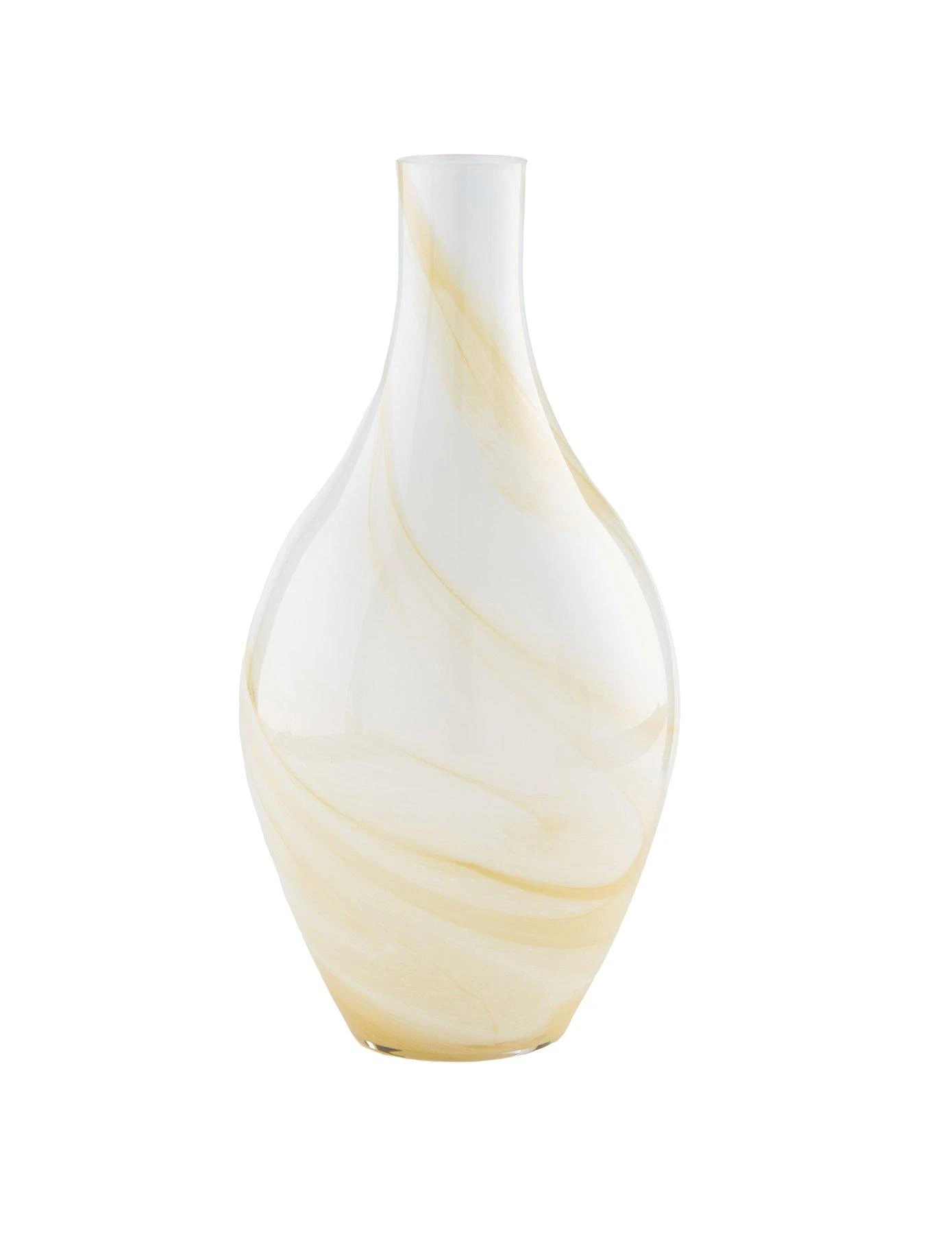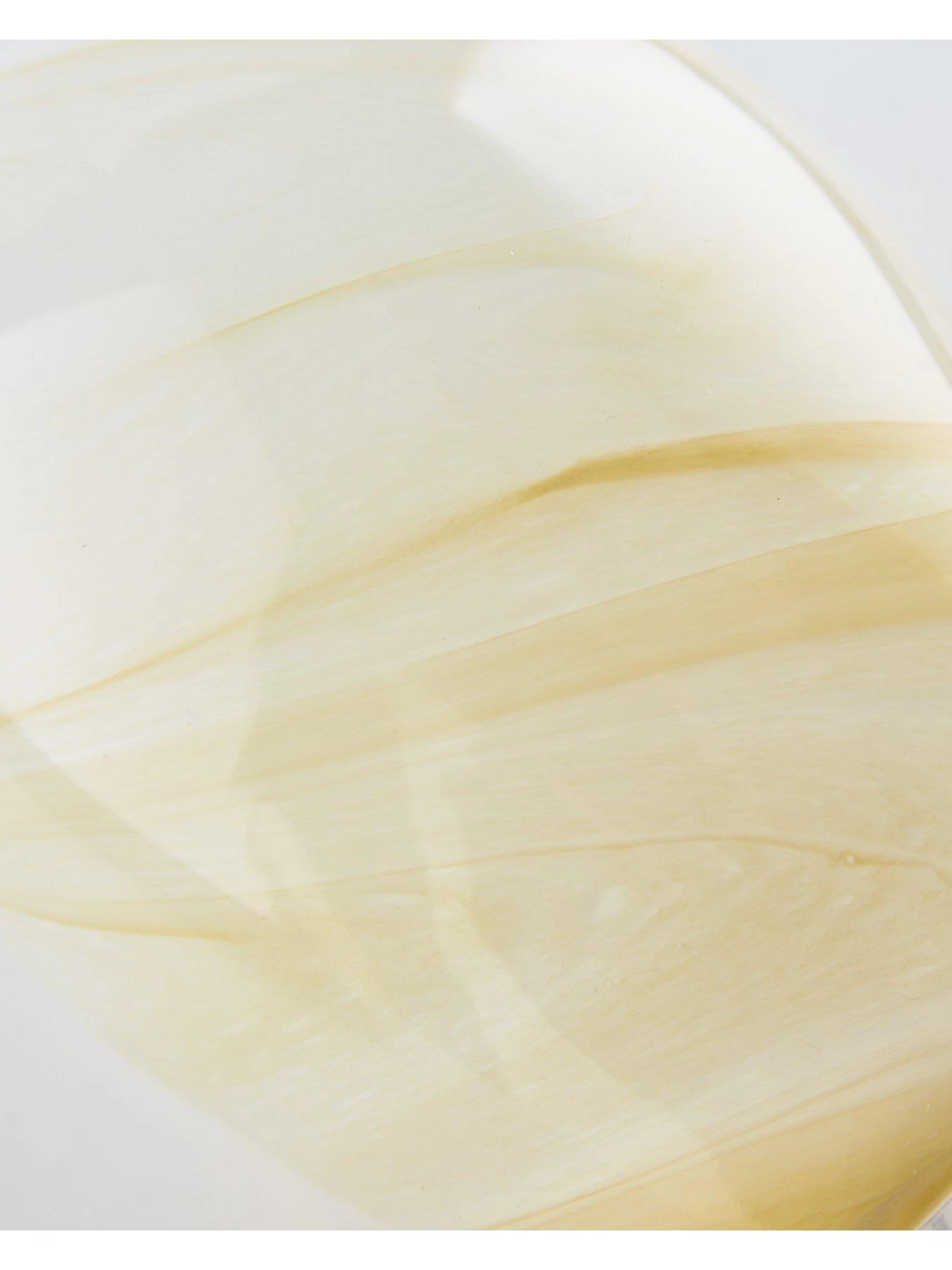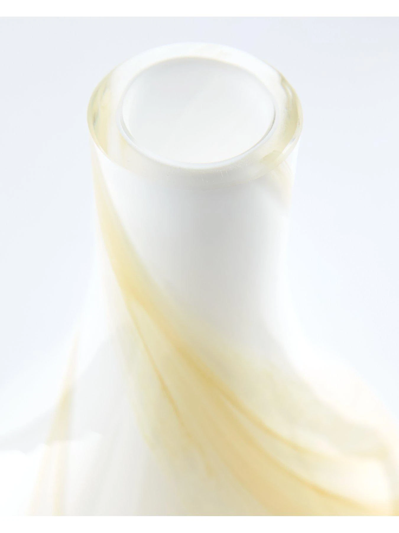 Beautifully designed, it takes on a stunning marble-like appearance as the glass body is brought to life by swirling patterns in a fresh colour combination of white and creamy yellow hues. This striking visual means it looks amazing when filled with fresh or faux flowers, however it can also be used as a purely decorative piece on a sideboard, a shelf or in a key space in your bookcase. Â
