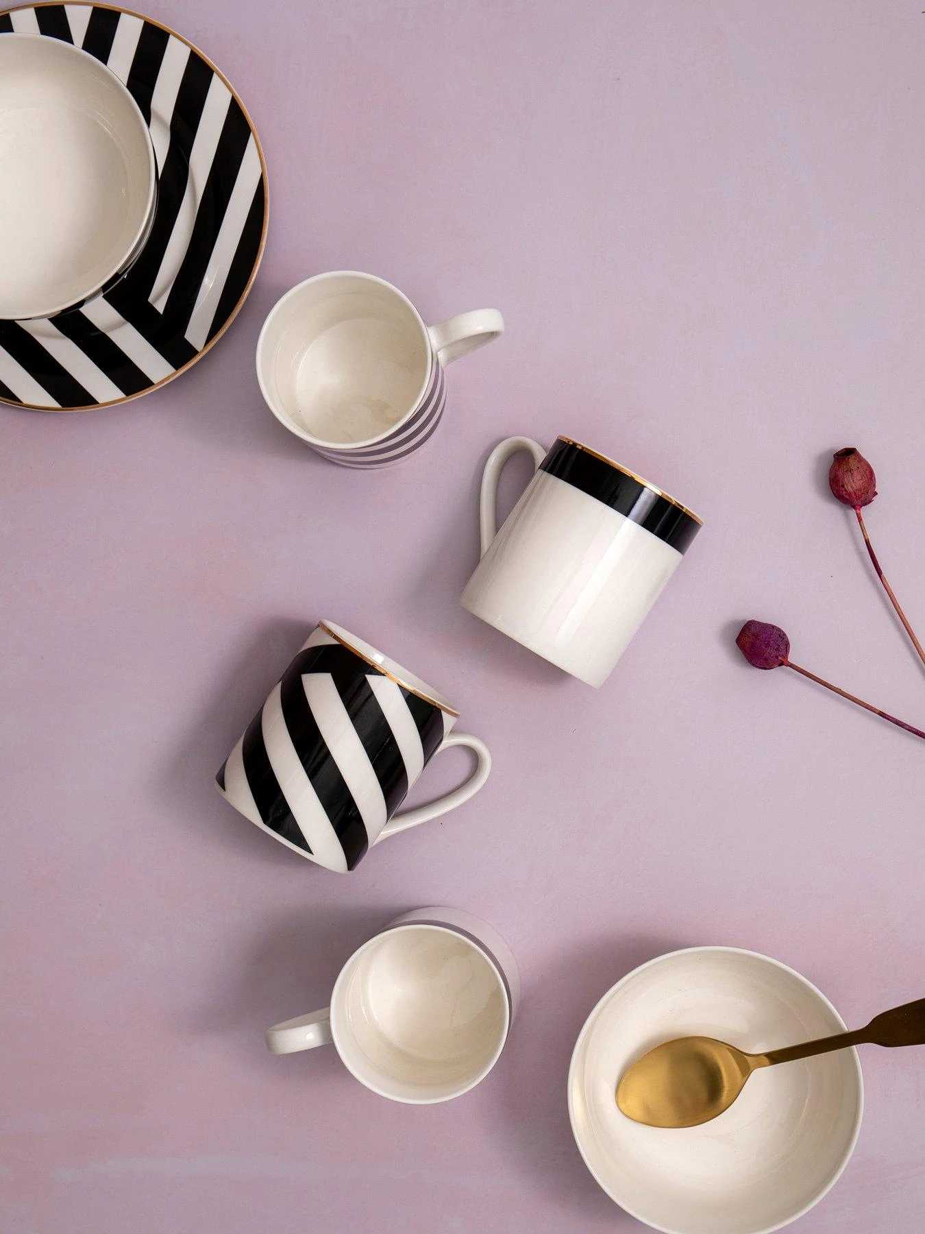 Beautifully made from delicate fine china, two are decorated with a black rim, while the other two capture the attention with dramatic stripes twisting around their exterior. All four are finished with gorgeous golden highlights for a stunning sparkle that’s easy to love. A capacity of 380 ml makes these mugs ideal for everything from your morning cuppa to a post-dinner coffee.