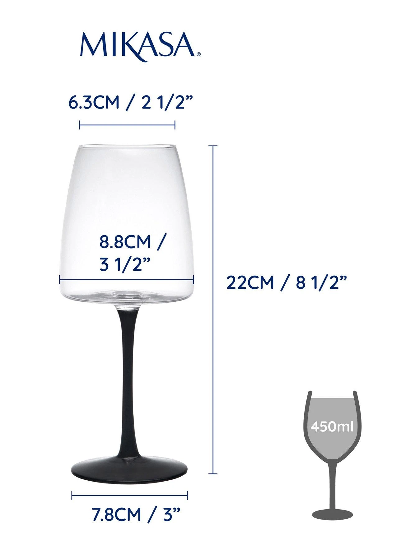 - DIMENSIONS: wine glasses boast a roomy 450ml capacity