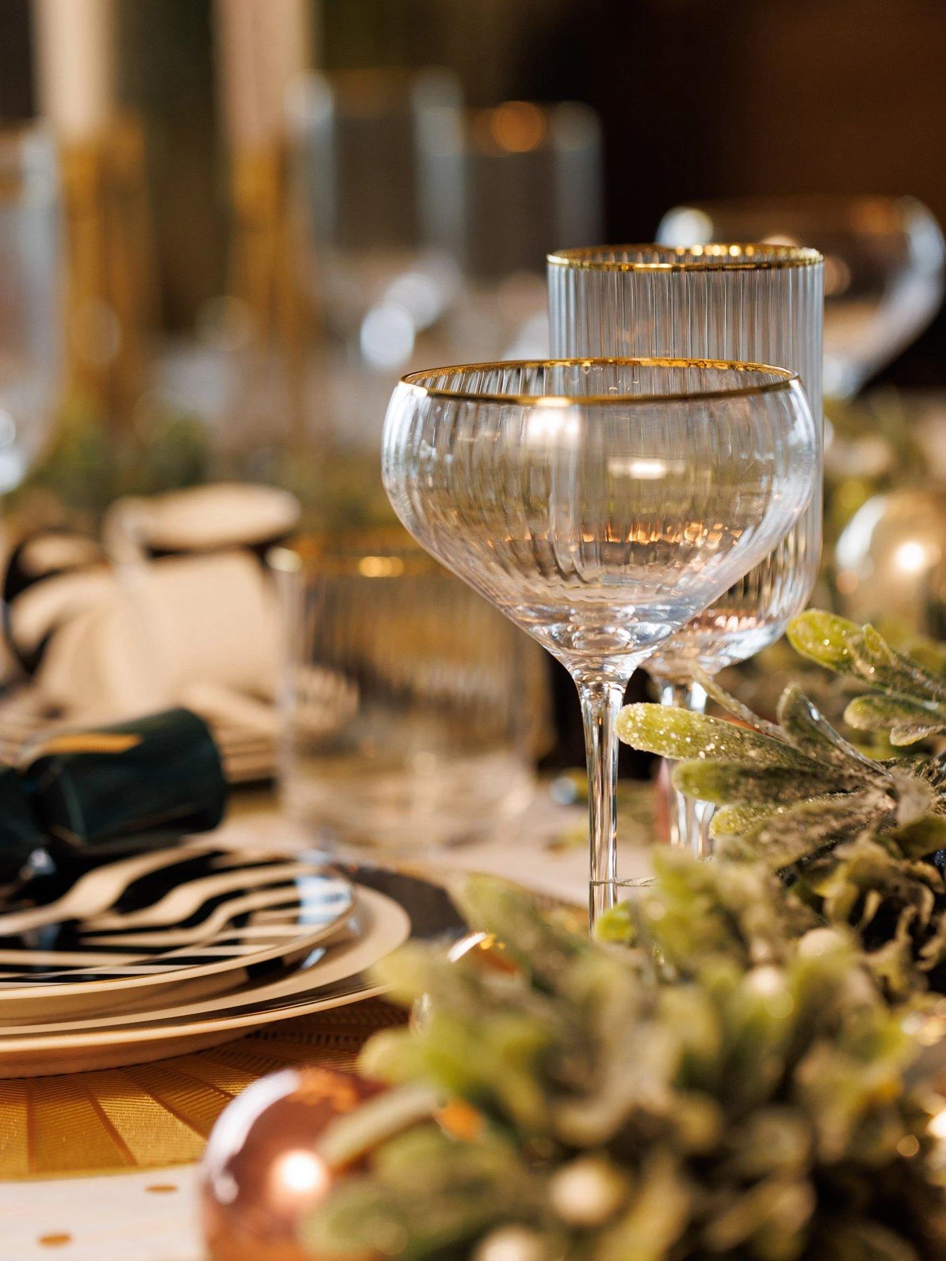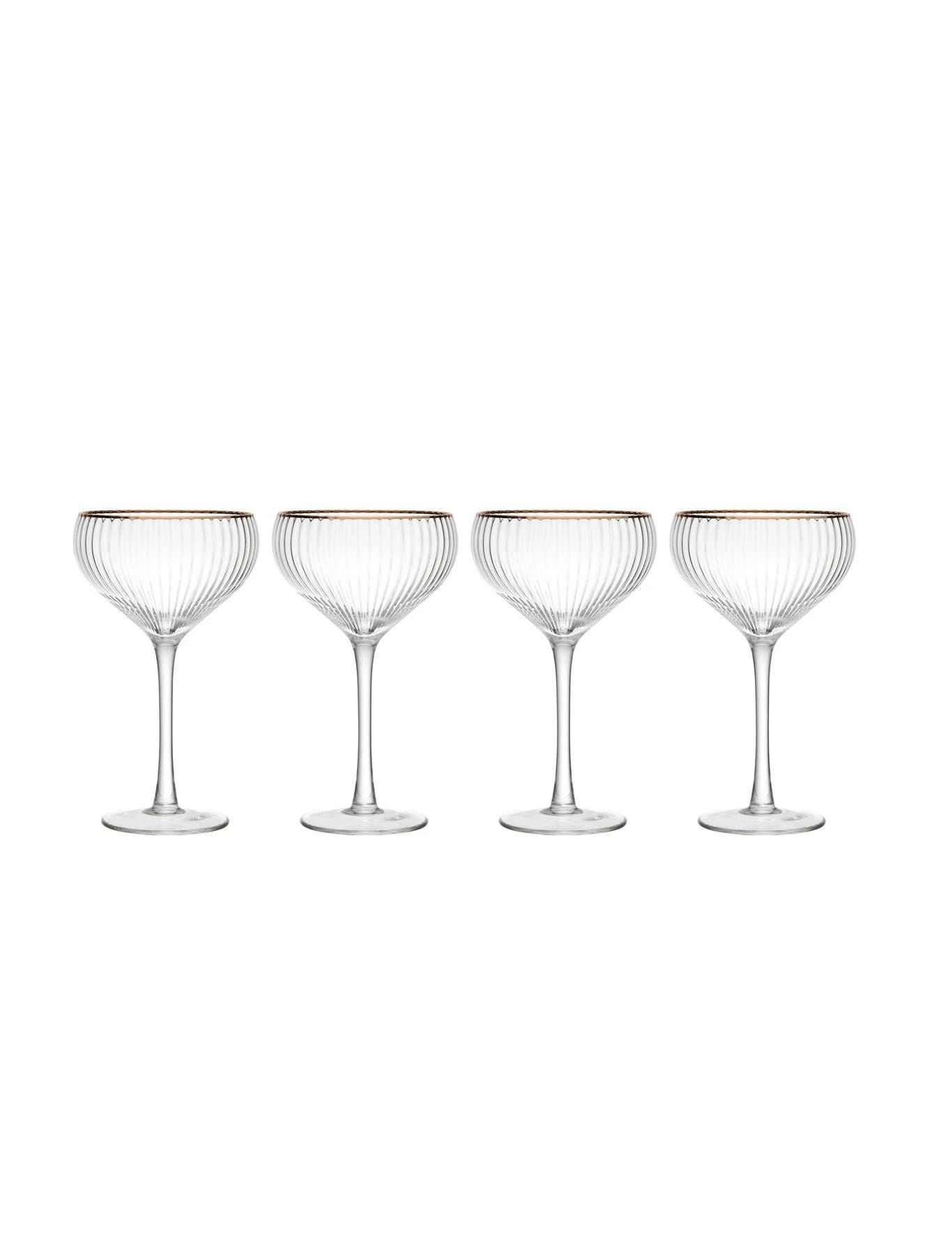 Each coupe glass is adorned with a ribbed pattern, set in perfectly clear crystal glass, which shimmers beautifully under light. Finished with an opulent gold rim on top, the glasses are perfect for serving Champagne or cocktails. The Sorrento collection is ideal for special celebrations and sits perfectly on any tabletop, adding an extra touch of elegance to the occasion.