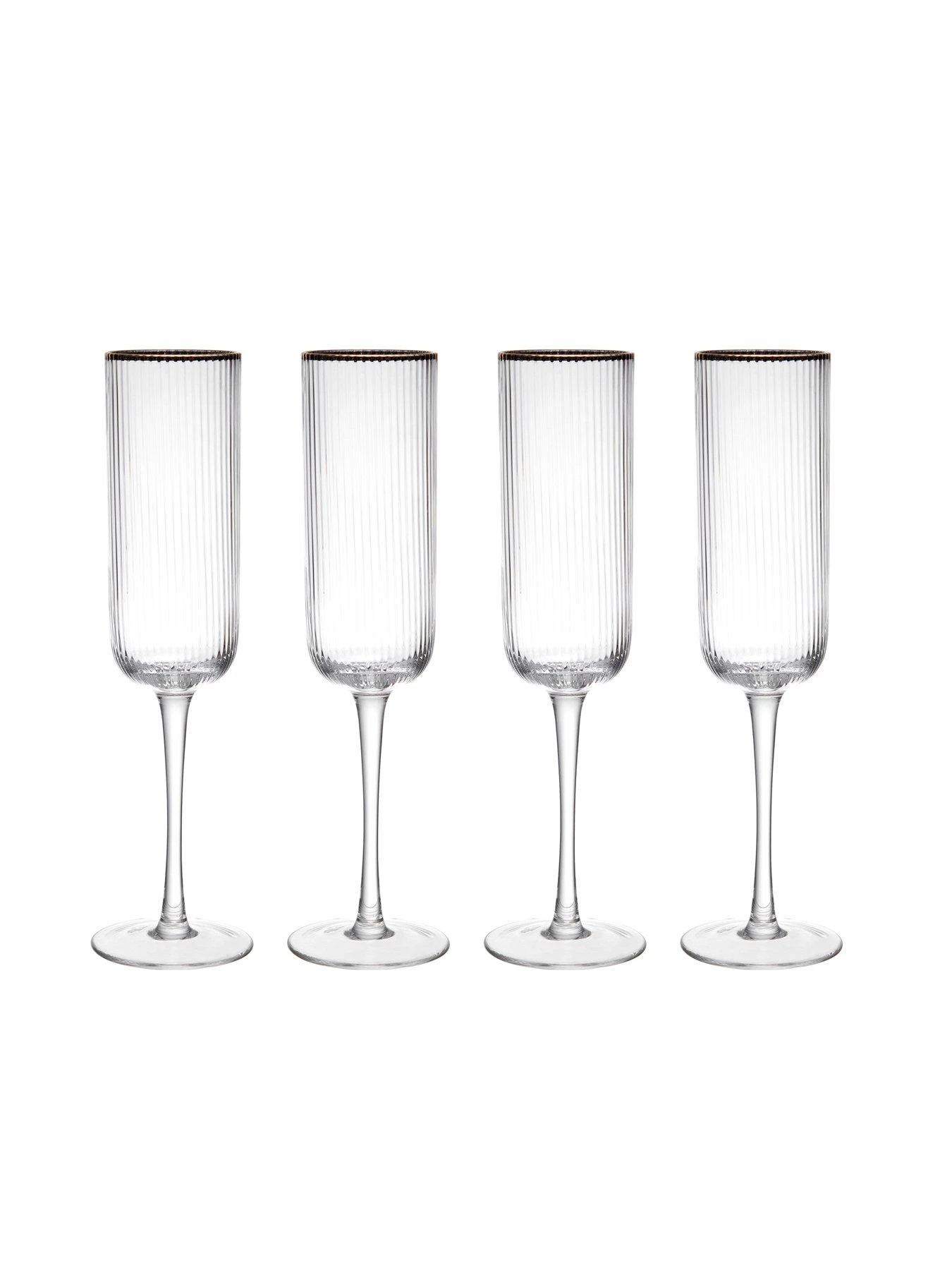 - SET INCLUDES: four crystal ridged Champagne flutes