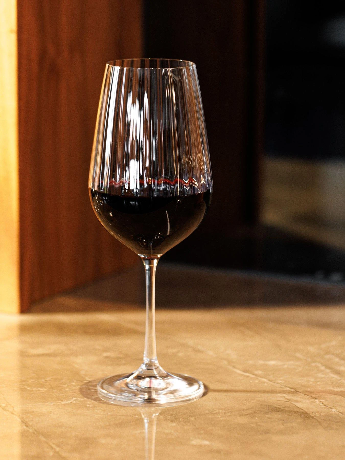 - SET INCLUDES: four crystal red wine glasses