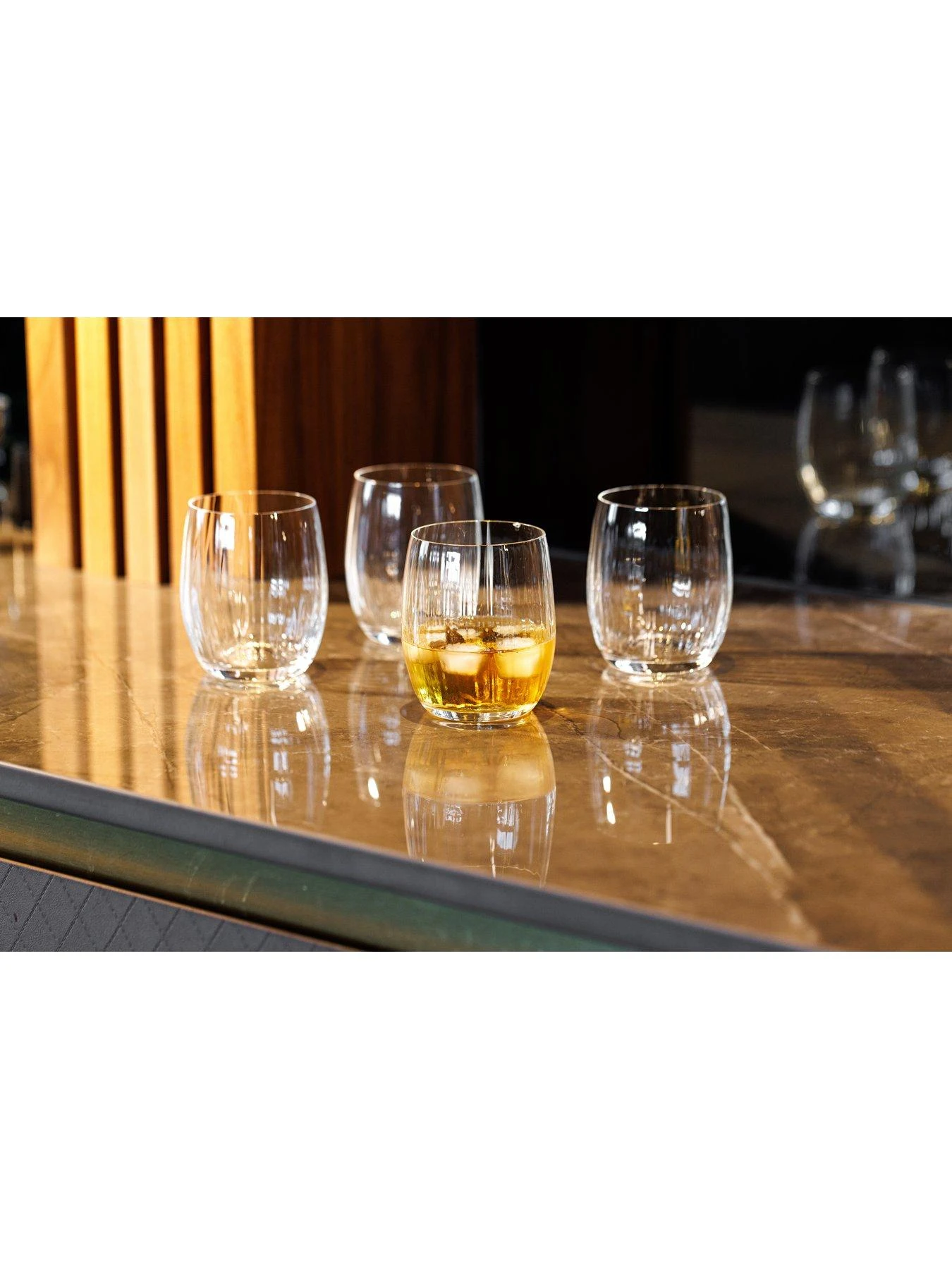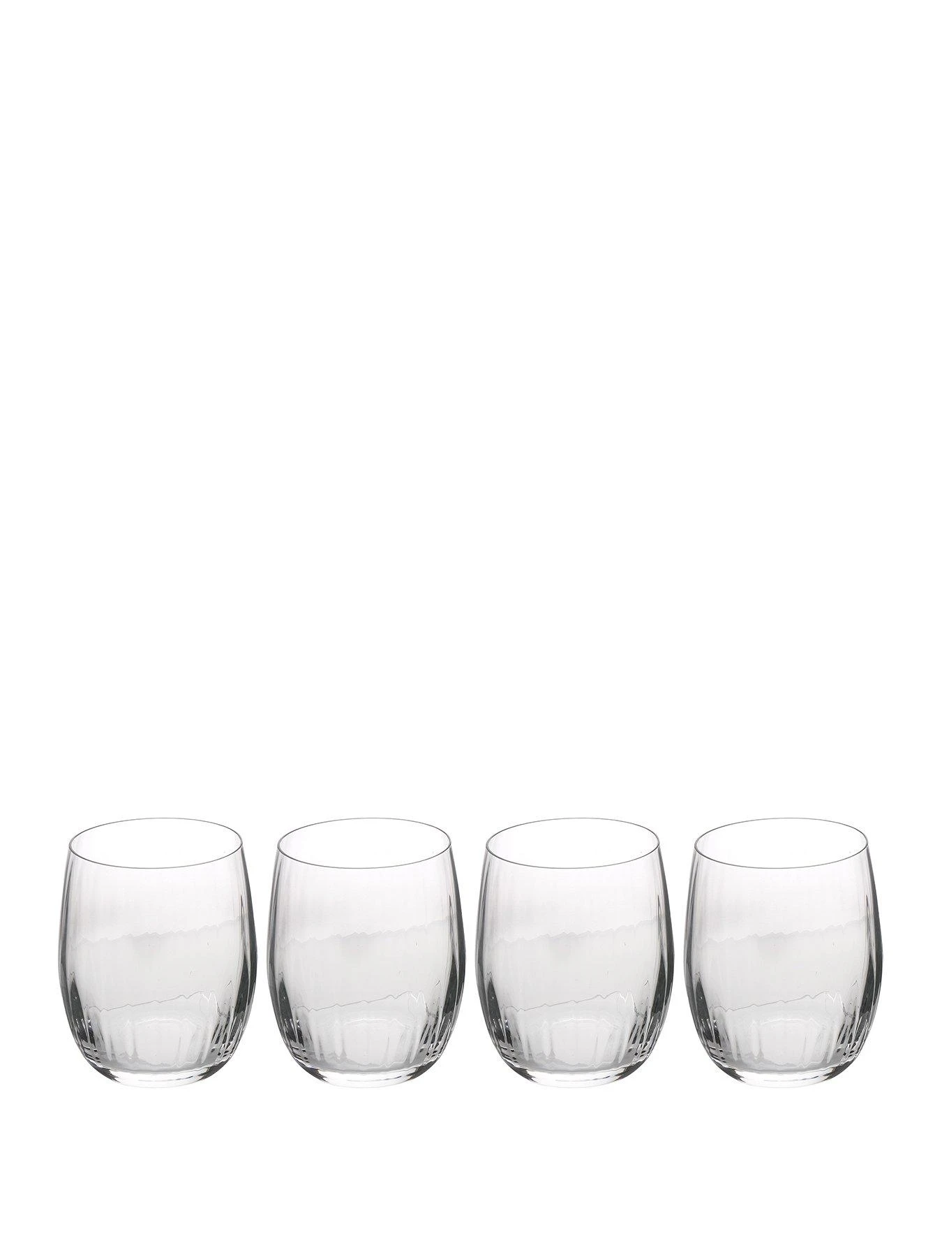 - SET INCLUDES: four crystal stemless wine glasses