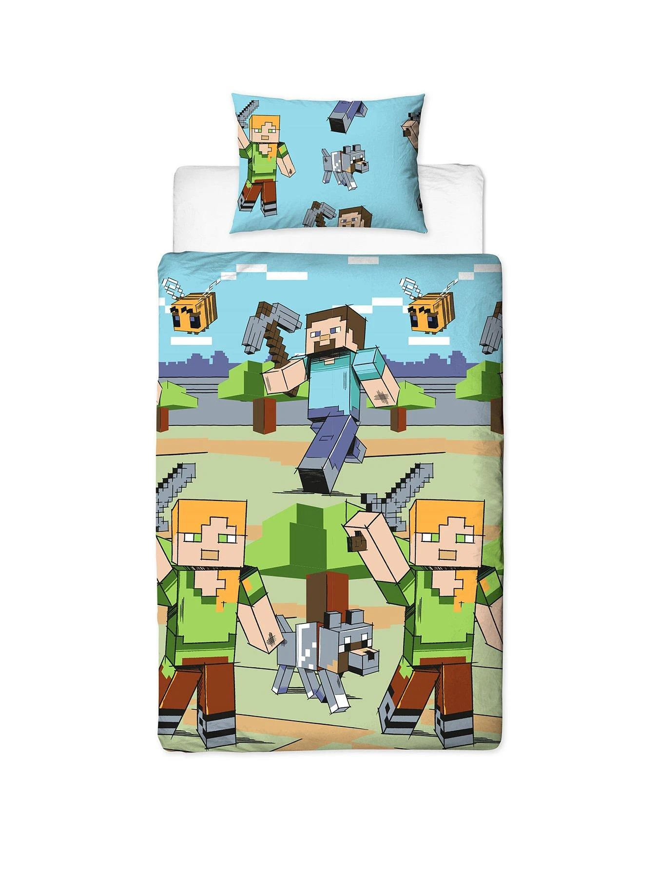Based on the smash-hit videogame, the cool design features Steve and Alex drawn in their signature blocky style with trees and wolves surrounding them. The set is reversible too, so flipping it over will reveal an alternative print that kids can switch to anytime they like.