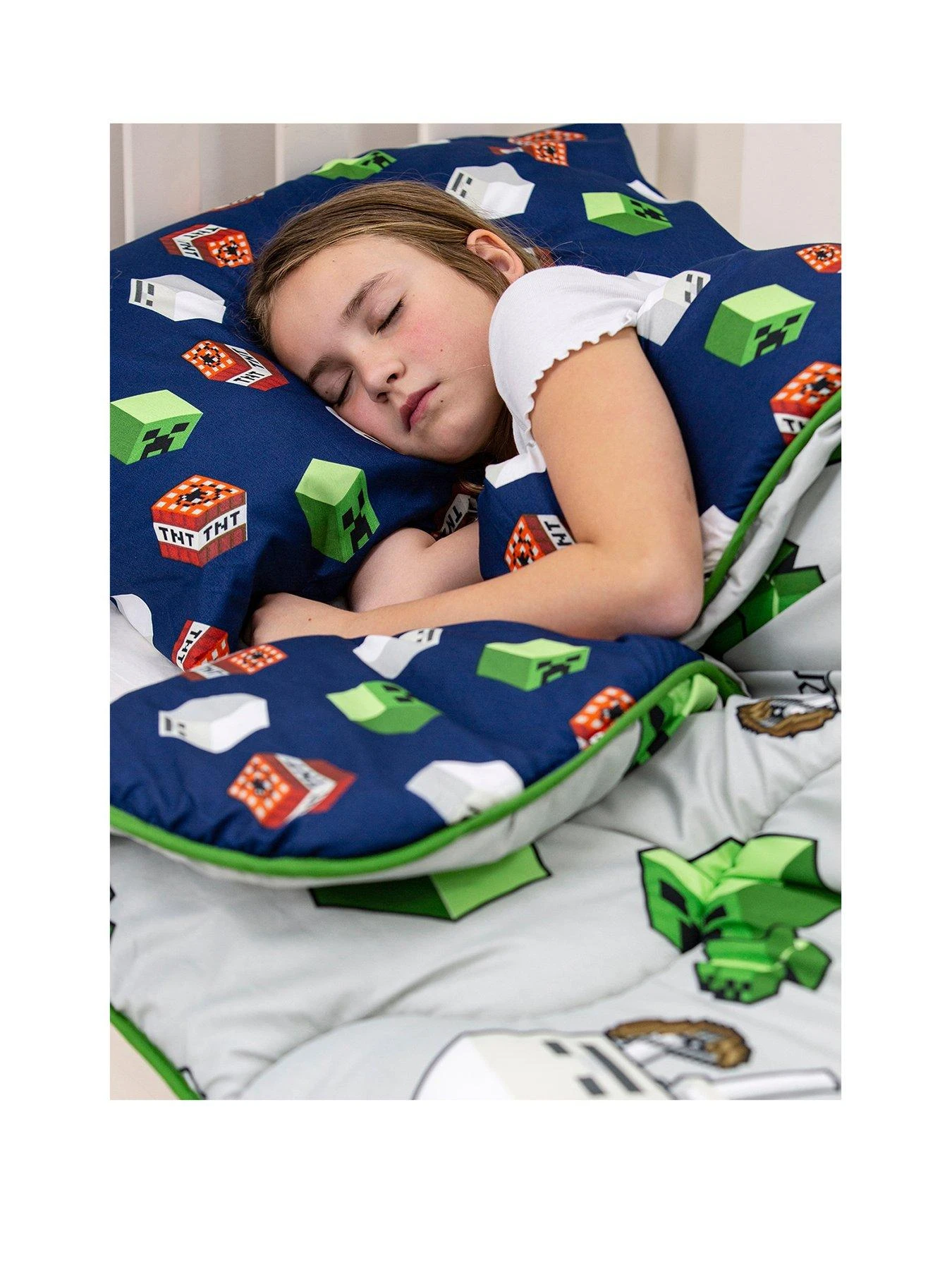 Featuring a cool Minecraft print with Creepers on one side and various blocks from the awesome video game on the other, this duvet comes complete with a pillowcase. A drawstring bag makes it perfect for rolling up and taking to sleepovers or on camping trips.