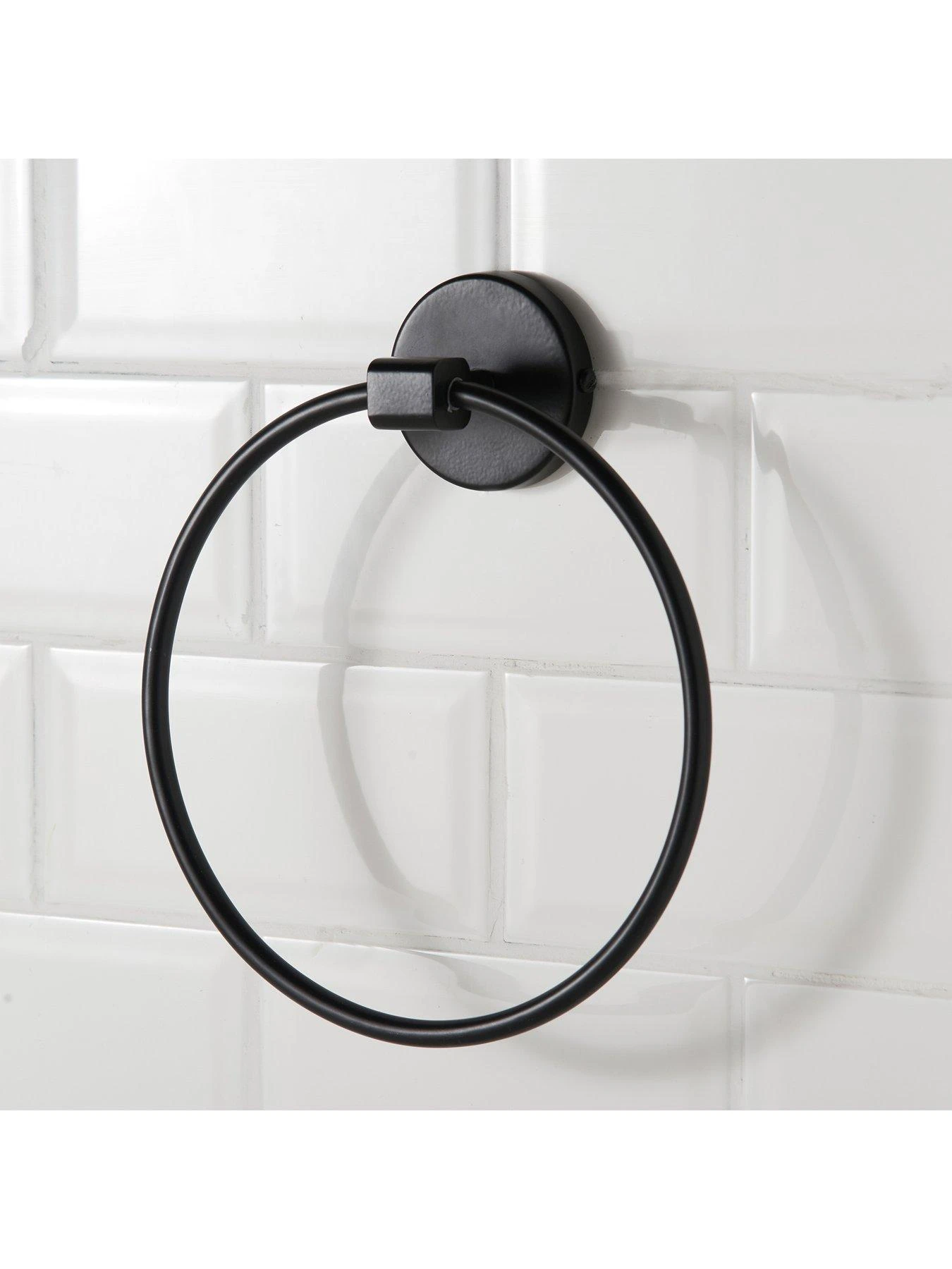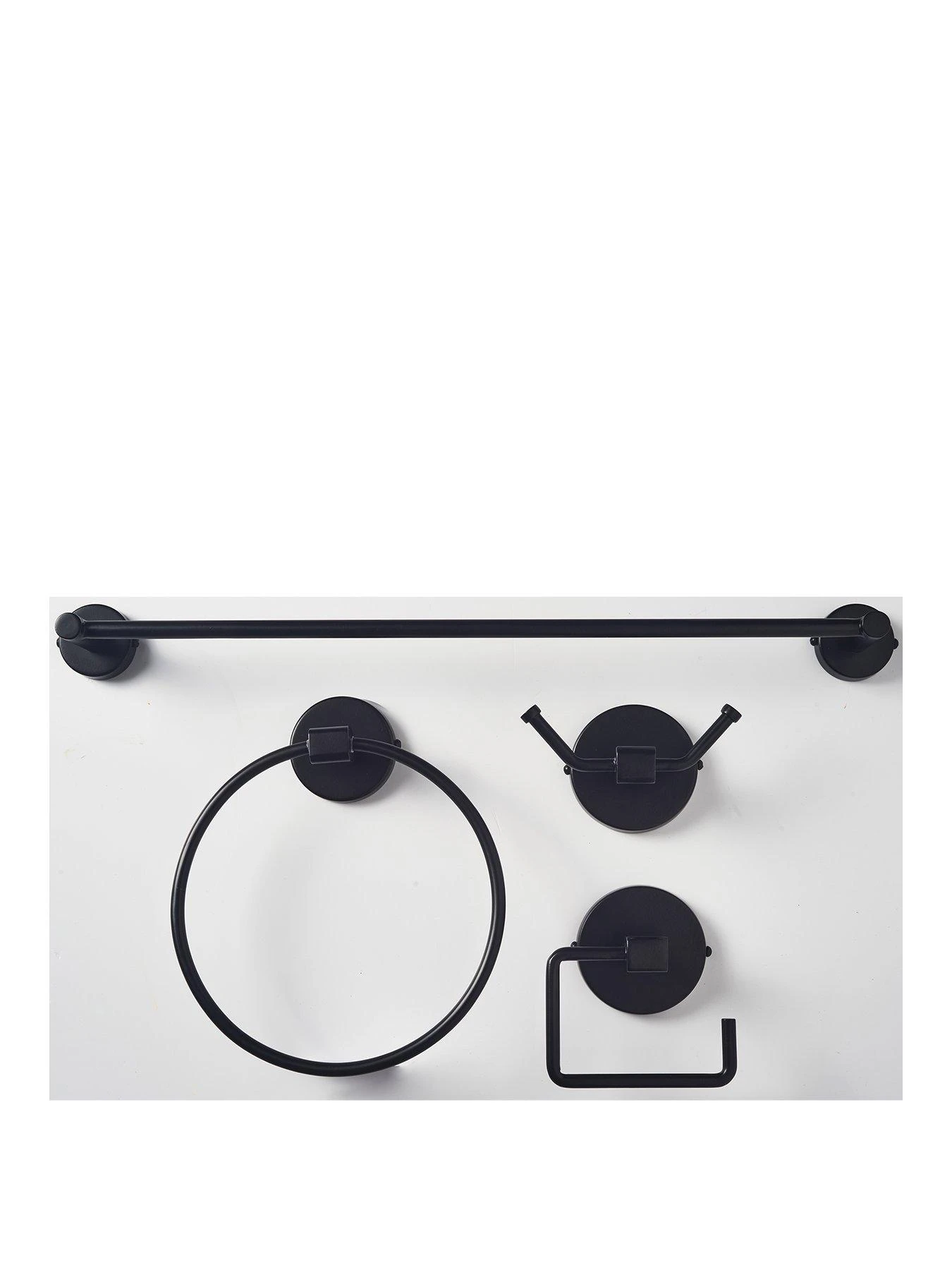 Our House 4-Piece Bathroom Fittings Set in Black â contains Towel Rail, Towel Ring, Toilet Roll Holder and Hanger