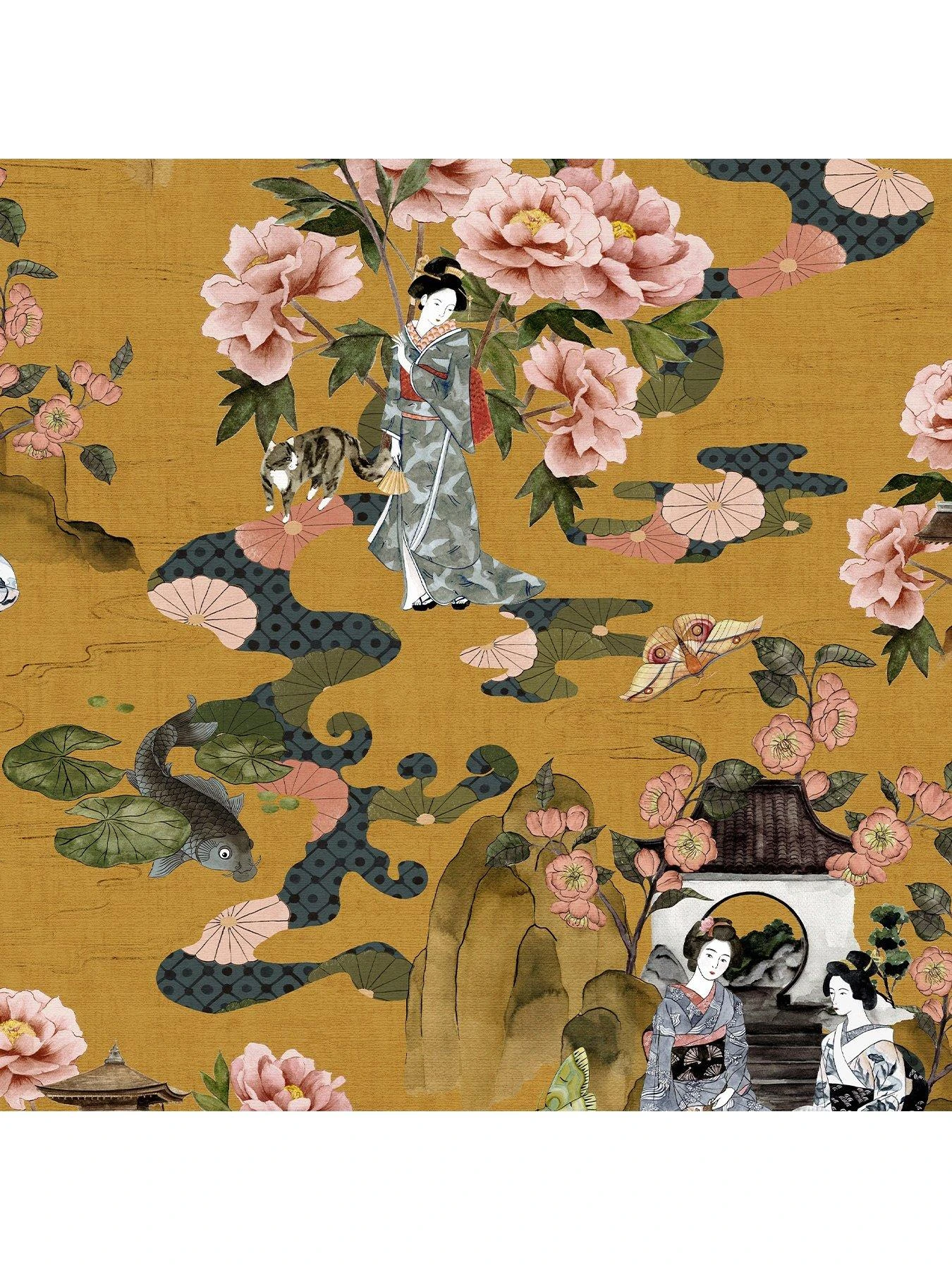 Frozen in time, elegant Geisha women wander through the gardens of Japan in this traditional style wallpaper. Immerse your space in the softness of this beautiful Japanese paradise. This wallpaper is a paste the wall application; simply paste the wall, hang your paper, and leave to dry. Each roll is 10m long and 53cm wide. Pattern repeat: 35cm Offset. Our Geisha wallpaper can be used to paper the whole room or to create an eye-catching feature wall. This wallpaper is also wipeable so that any light marks can be dabbed away.
