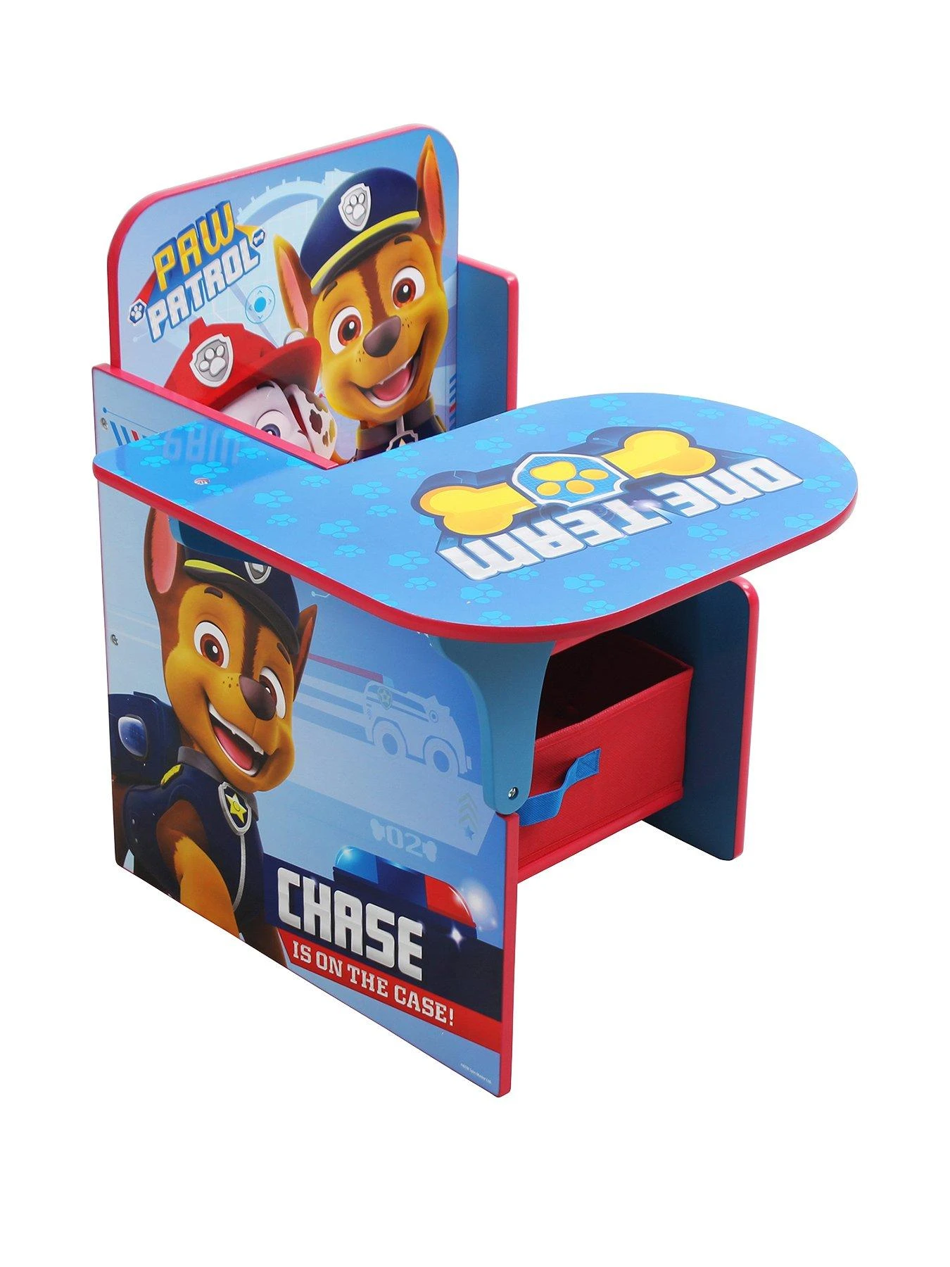 This Paw Patrol Chair Desk with Storage boasts colorful graphics of your favourite Paw Patrol characters Marshall & Chase, This stunning Paw Patrol Chair Desk is the perfect place for your child to sit and get all of there work done and is great for colouring playing and reading. Includes a storage bin underneath keeping toys close at hand and a built-in cup holder for easy access supplies. Perfect for display in any playroom or bedroom